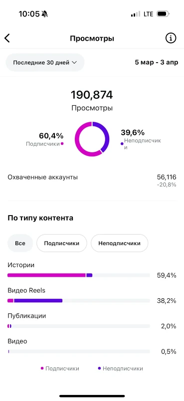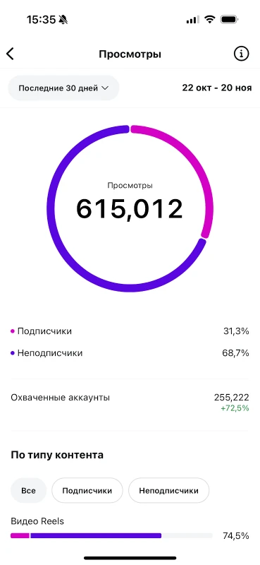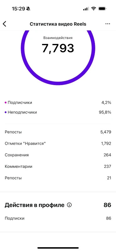 Когда клиент обратился к нам, у неё уже была одна большая победа: два её Reels собрали ~4 миллиона просмотров и принесли около 11 000 подписчиков