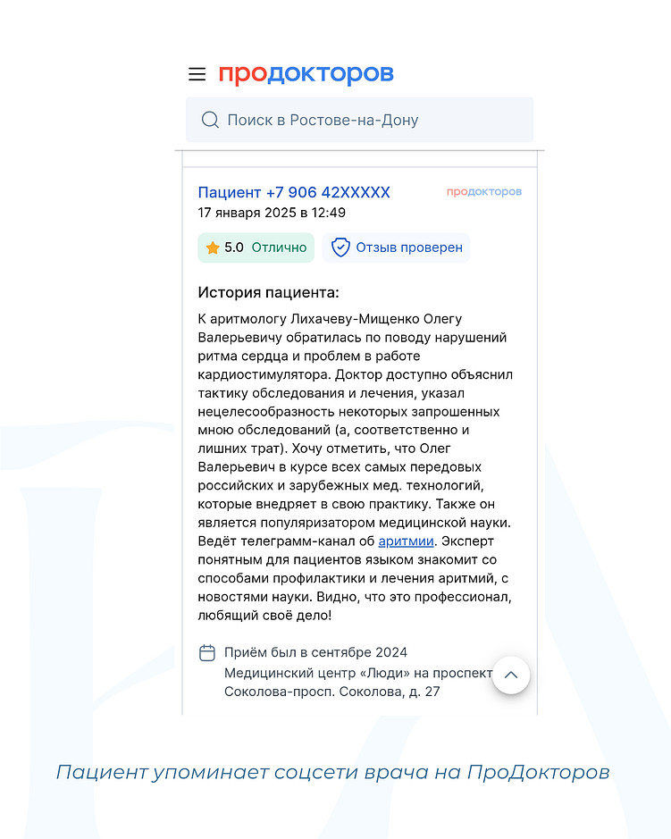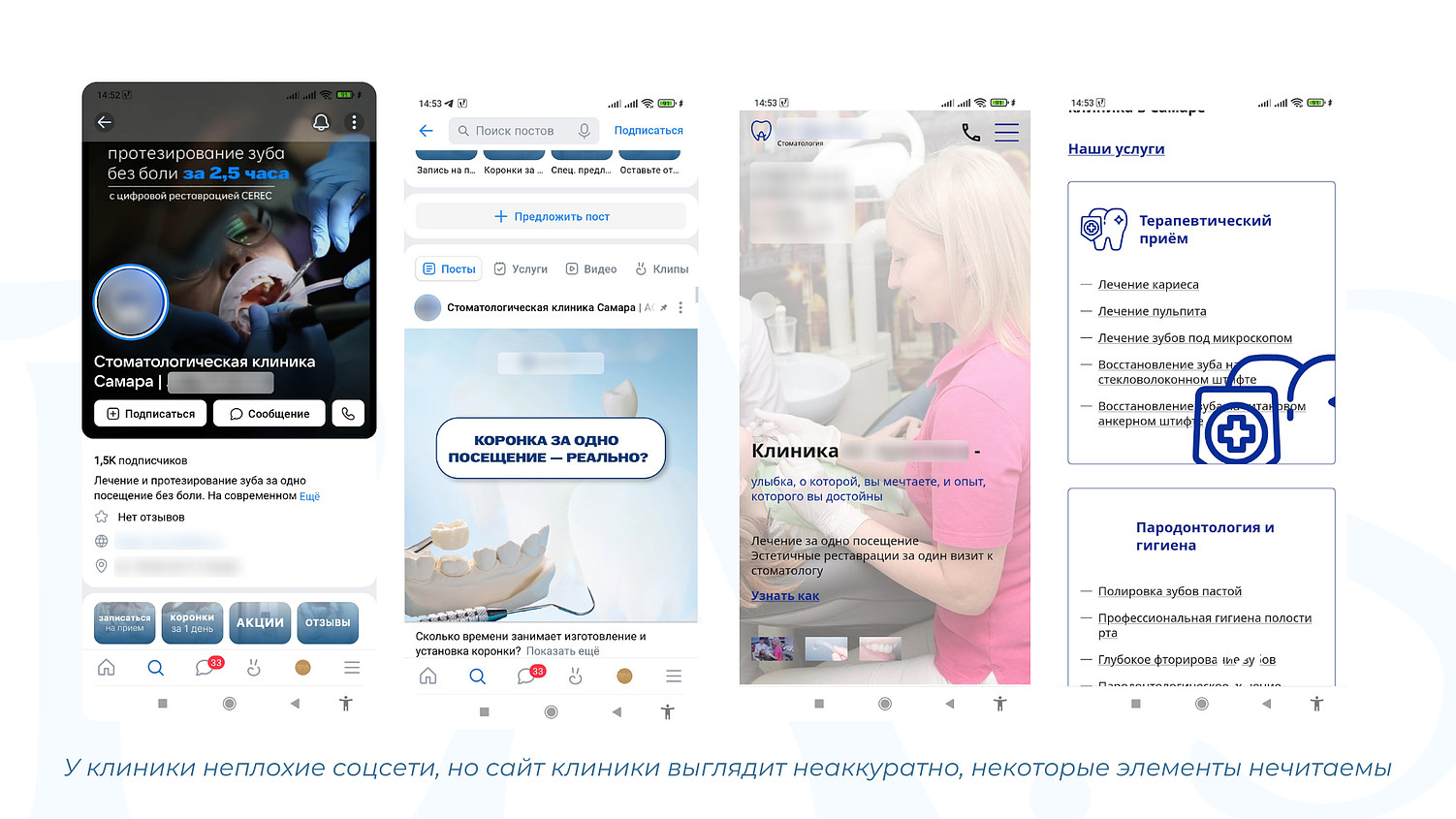 Социальные сети почти никогда не становятся точкой принятия решения. Их роль — вызвать интерес, сформировать доверие, подтолкнуть человека к следующему шагу. А дальше он начинает знакомиться с клиникой ближе: переходит на сайт, читает отзывы, смотрит, насколько понятно описаны услуги, оценивает, легко ли записаться и как с ним общаются после первого обращения.