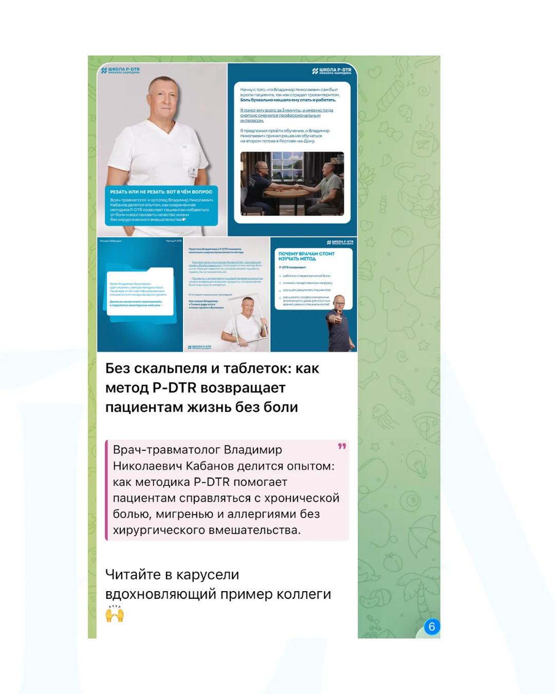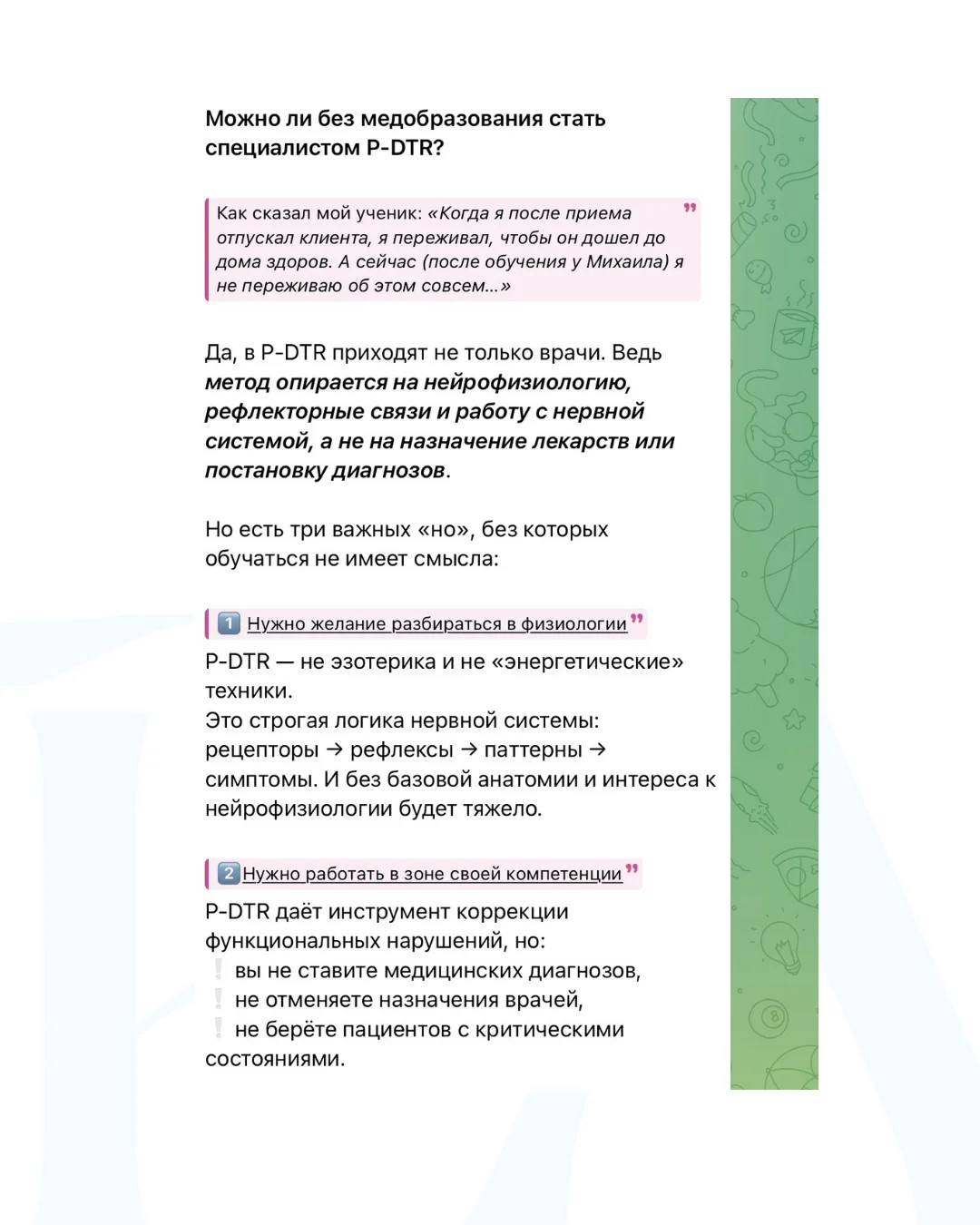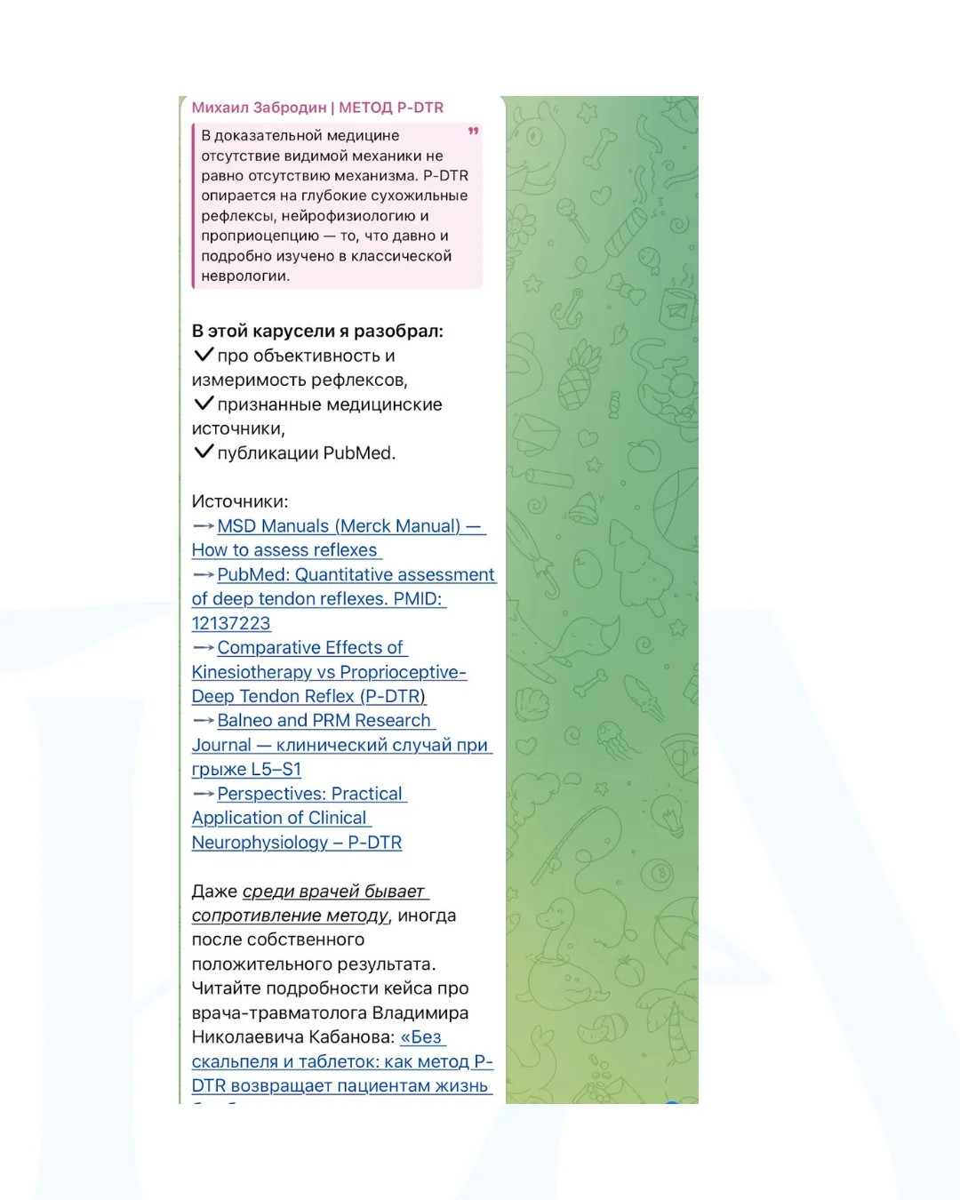 ➍ Демонстрация кейсов и принципов работы Основной критерий для действующих специалистов — положительная динамика пациентов после лечения. Мы делились различными клиническими случаями, которые позволяли понять, насколько эффективно работает метод P-DTR и в каких областях он применим.