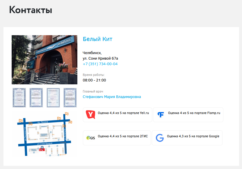 о контролирующих организациях. Информация о сотрудниках-экспертах в данной области и возможность связаться с ними лично. Статьи эксперта должны содержать ссылки на отраслевые источники и медицинские исследования, на которые он опирался при написании текстов. Необходимы положительные упоминания об эксперте или компании в отзывах, новостных статьях, научных публикациях, отраслевых сайтах и т.д. Положительные отзывы на сторонних сайтах с отзывами, например, flamp.ru. Асессоры с помощью таких сайтов делают отзыв о вашем сайте или компании. Сайты для отзывов должны быть тематическими, которым доверяют люди в вашей отрасли. Отзывы должны регулярно наращиваться. Отзывы на сторонних сайтах-агрегаторах, например, ПроДокторов. На сайте должен быть подробный раздел «Вопрос-ответ» с разбором актуальных для вашего направления вопросов. Информация о создателе сайта, можно поместить в «подвале» сайта. Сюда относятся дипломы за участие в профессиональных конкурсах и рейтингах, грамоты и благодарности за выступления на конференциях и участие в отраслевых мероприятиях, рекомендации известных организаций и публичных людей. Они могут относиться как к самой компании, так и к сотруднику, директору или учредителю. При создании использование разметки schema даст положительные результаты и покажет Google вашу авторитетность и экспертность. Должна быть страница в Wiki или хотя бы упоминание об эксперте в тематической статье Википедии. Желательно размещать фото- и/или видеоконтент по каждой предоставляемой услуге, участии в мероприятии, конференциях и т.д. Такое видео повышает доверие клиента, который видит за бизнесом реального человека. На сайте должны продаваться только свои товары или услуги. Наличие на сайте своих видеороликов или своего канала на YouTube также повышает узнаваемость и авторитетность. Коммерческая информация Указать возможные способы оплаты и продублировать иконками платежных систем. Например, в формате «До/После». Это один из способов показать реальные результаты и пользу от ваших товаров и услуг. Регулярно обновляющаяся информация о жизни компании, новых товарах, услугах, скидках, акциях и т.д. Если на сайте используются формы со сбором личных данных, необходимо разместить форму согласия на использование и обработку персональных данных посетителей. После внедрения всех основных EAT-факторов на одном из продвигаемых мной сайтов, посещаемость стала увеличиваться. Позиции стали заходить в топ-10. Заявок с сайта стало больше, клиника уже на второй месяц работы по SEO стала окупать вложения. Повышение EAT сайта — довольно трудоемкая работа, но она того стоит. Какие-то пункты вы можете внедрить самостоятельно или вместе с вашим маркетологом, для других же нужна помощь SEO-специалиста. Но перед тем, как начать работу над EAT, нужно проанализировать, по каким пунктам хромает именно ваш сайт. Поэтому всем, кто напишет по этой