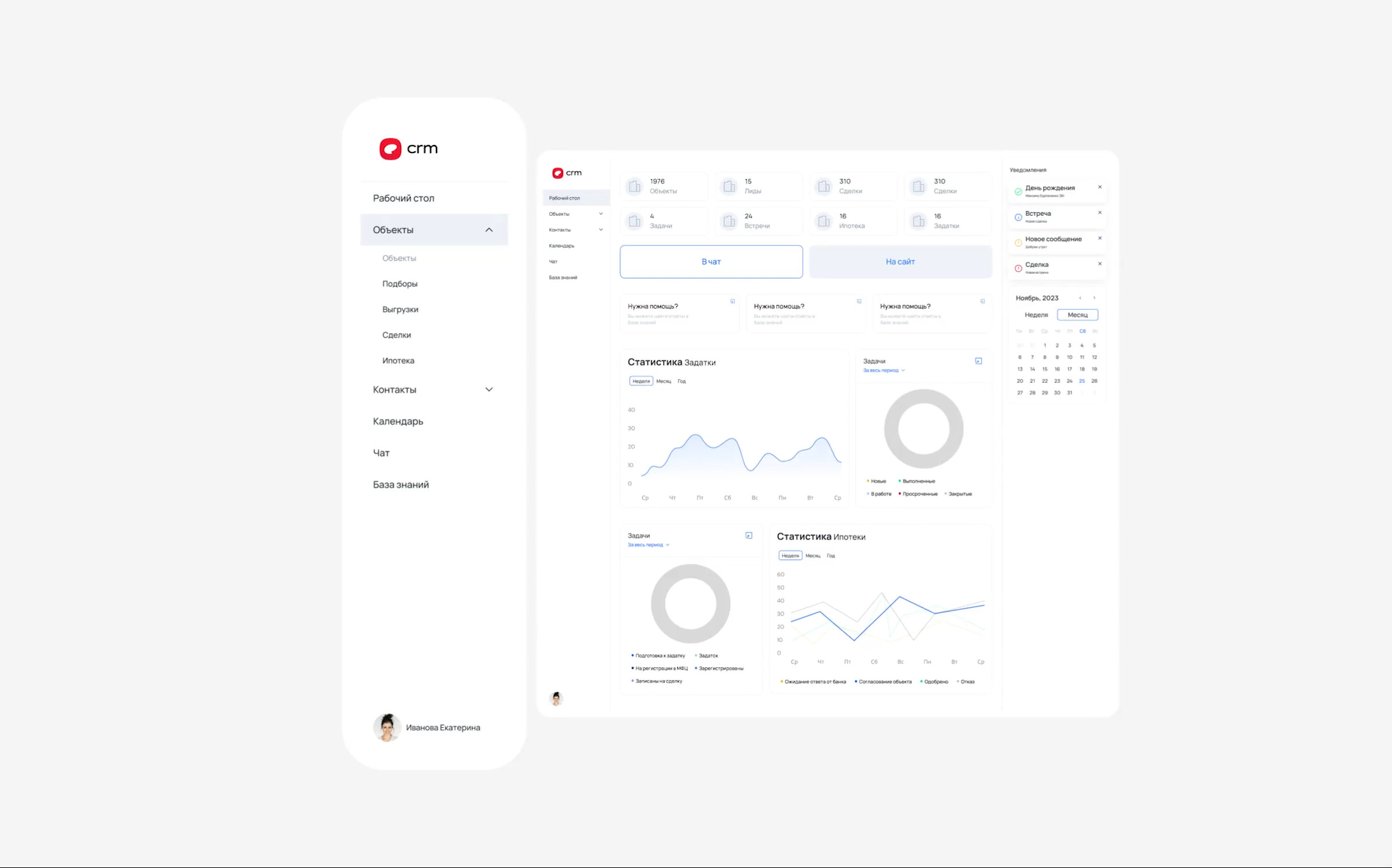 Разработать удобный современный сайт и CRM-ку, которую будут вести сотрудники. Оба продукта должны быть консистентными и работать в прямой связке.