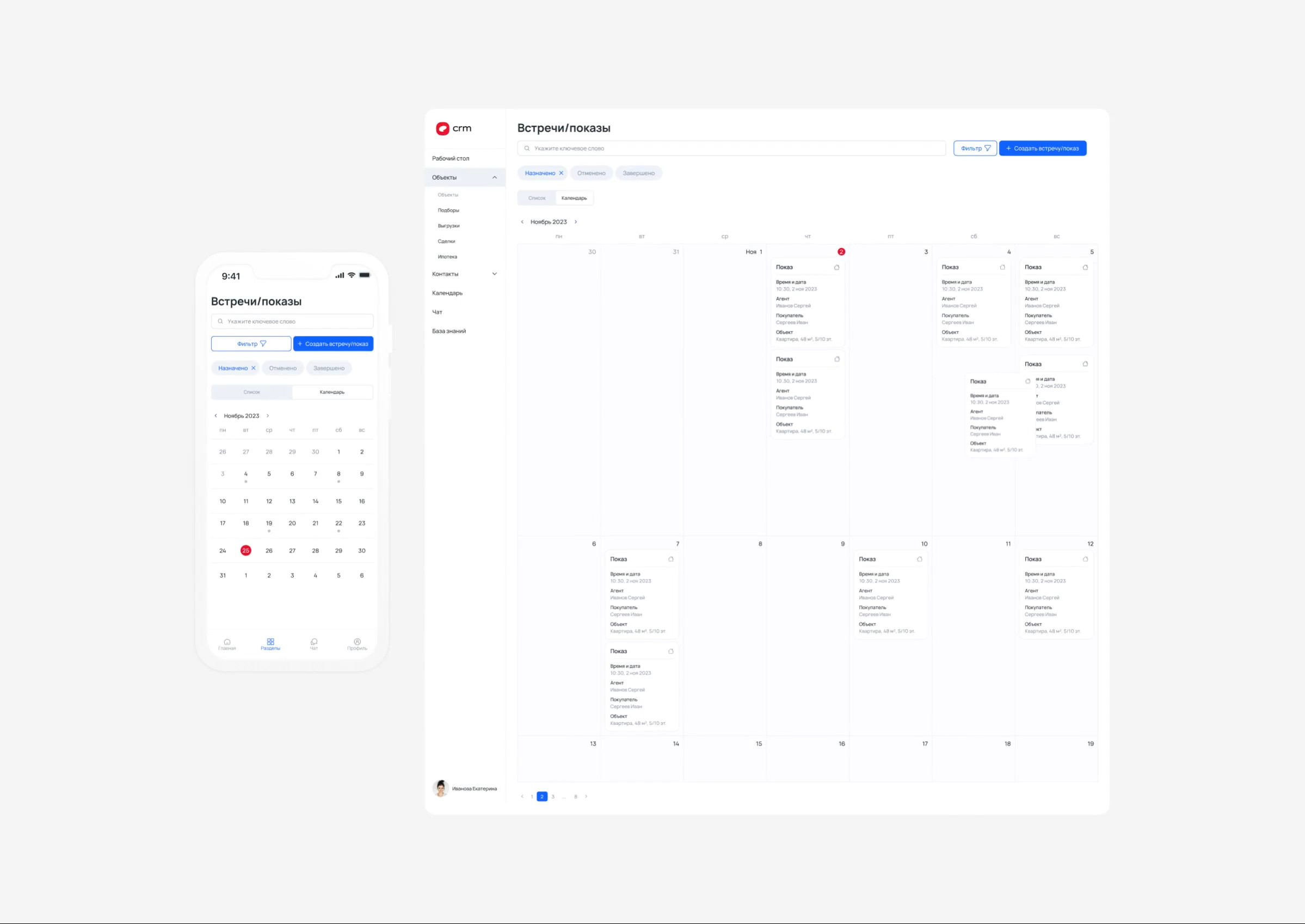 Провели глубинные интервью с командой заказчика. Приняли решение разделить работы по CRM-ке по основным разделам: Сайт решили делать простым, с удобной и понятной навигацией: Разработали прототипы для 129 страниц. Отработали более 300 сценариев действий пользователей. Сделали дизайн-систему и задизайнили десктопную, мобильную и планшетную версии. Написали техническую документацию для разработчиков и передали в продакшн. Вместо бездушным форм обратной связи — чат (но не GPT) с автоматическими действиями. Он консультирует об услугах и условиях, а также поддерживает быструю связь со свободным риелтором. Текстовые и цветовые стили + 113 вариативных элементов интерфейса, которые дают возможность быстро развивать и расширять новые страницы. Основные разделы и показатели под рукой. Понятная навигация позволяет попасть в нужный раздел в один клик. Можно быстро создать новый или найти необходимый объект:) Объект новостройки и квартира во вторичке. Функционал со статусом публикации и кнопкой отправить на модерацию. Есть функционал актуализации объекта для ответственного риелтора с возможностью передать его другому. На странице объекта (и не только объекта) есть дополнительные вкладки, где хранится информация: выгрузки, встречи/показы, сделки, задачи, комментарии, история, изменение стоимости. Чтобы ориентироваться во встречах и мероприятиях Проблематика большинства сайтов агентств недвижимости в перегруженном главном экране: куча акций, сложный фильтр и непонятная навигация. Всего этого мы избежали при проектировании. Отзывы просто буквами — это отстой 🤢 Мы придумали, что будут сторьки для храбрых и текстовый отзыв с фоткой объекта для остальных. Мало кто ставит аватарки, но подтянуть фото из личного кабинета элементарно:) В карточке объекта вся необходимая для пользователя информация. Условие ипотечных программ от банков и информативный калькулятор. Одна из ключевых проблем агентств недвижимости — поиск кадров. Проработали нескучный лендинг под HR. Рассказали об условиях работы, показали жизнь команды и плюшки агентства. Можно познакомиться с человеком поближе, оставить отзыв и написать ему в чат. Можно воспользоваться фильтром, выбрать объект на карте или из выдачи. На странице объекта посмотреть всю информацию о нем, об инфраструктуре и застройщике. 3 месяца мы как истинные диджитал-волки хлопотали как не в себя. Сейчас проект на этапе программирования. Впереди 6 месяцев жизни с: Будет 🤬 посмотреть на конечный продукт. Макс Пичугин — арт-директор Максим Бурлаченко — проект-менеджер Ваня Леонов — тимлид Алёна Короткова — дизайнер Настя Селивестрова — дизайнер Юра Таранов — техлид Ксюша Жукова — моушн и анимация Антон Лобанов — исследователь Алена Бухарова — копирайтер Кейсы на behance Больше кейсов на сайте Не забывайте подписывать на наш телеграмчик