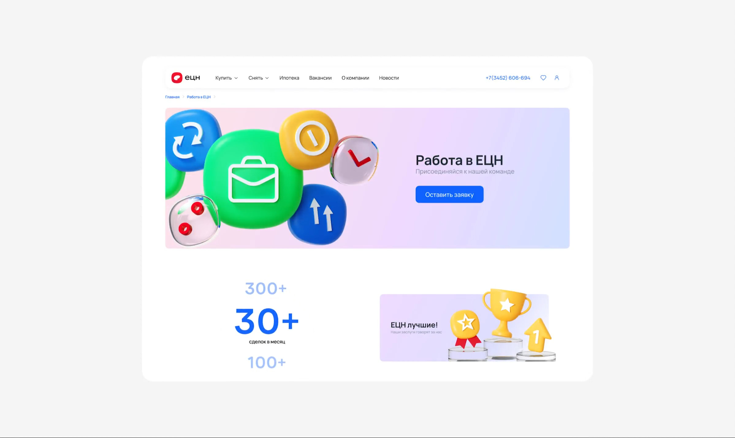 ЕЦН — молодое и быстрорастущее агентство недвижимости из г.Тюмень. Мы провели грандиозный ребрендинг компании. Старый сайт унылое 💩 в современных реалиях. Но что еще хуже, нет комфортных условий для сопровождения заказчиков. Риелтору банально неудобно вести сделки в CRM. А собственникам, привет Наташа 👋🏻, нет возможности анализировать результаты работы.