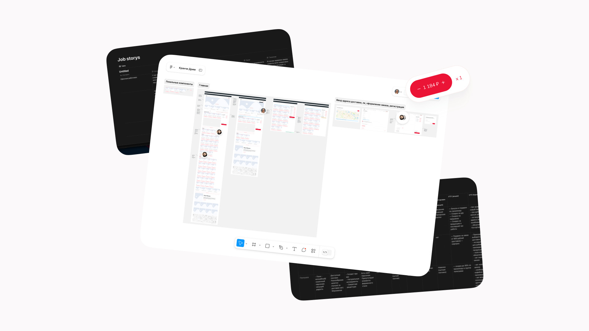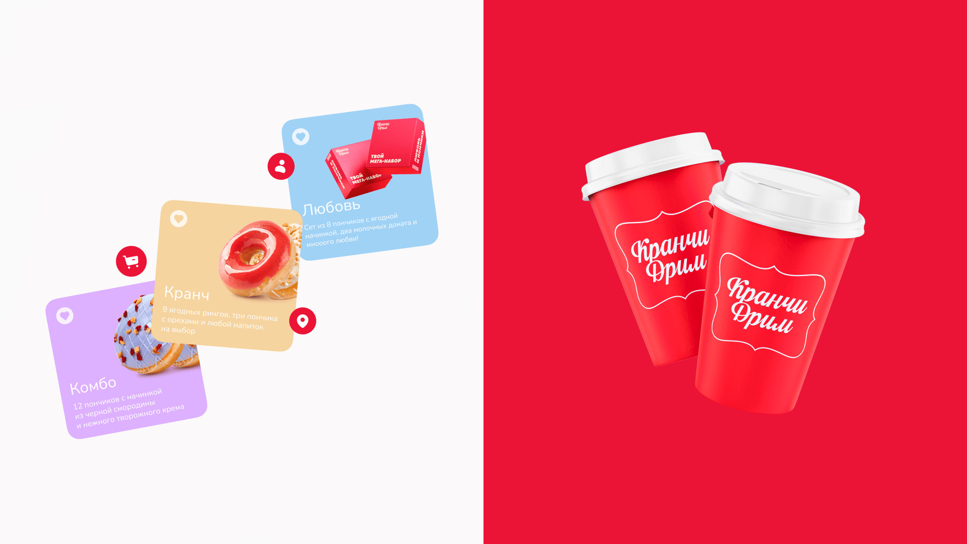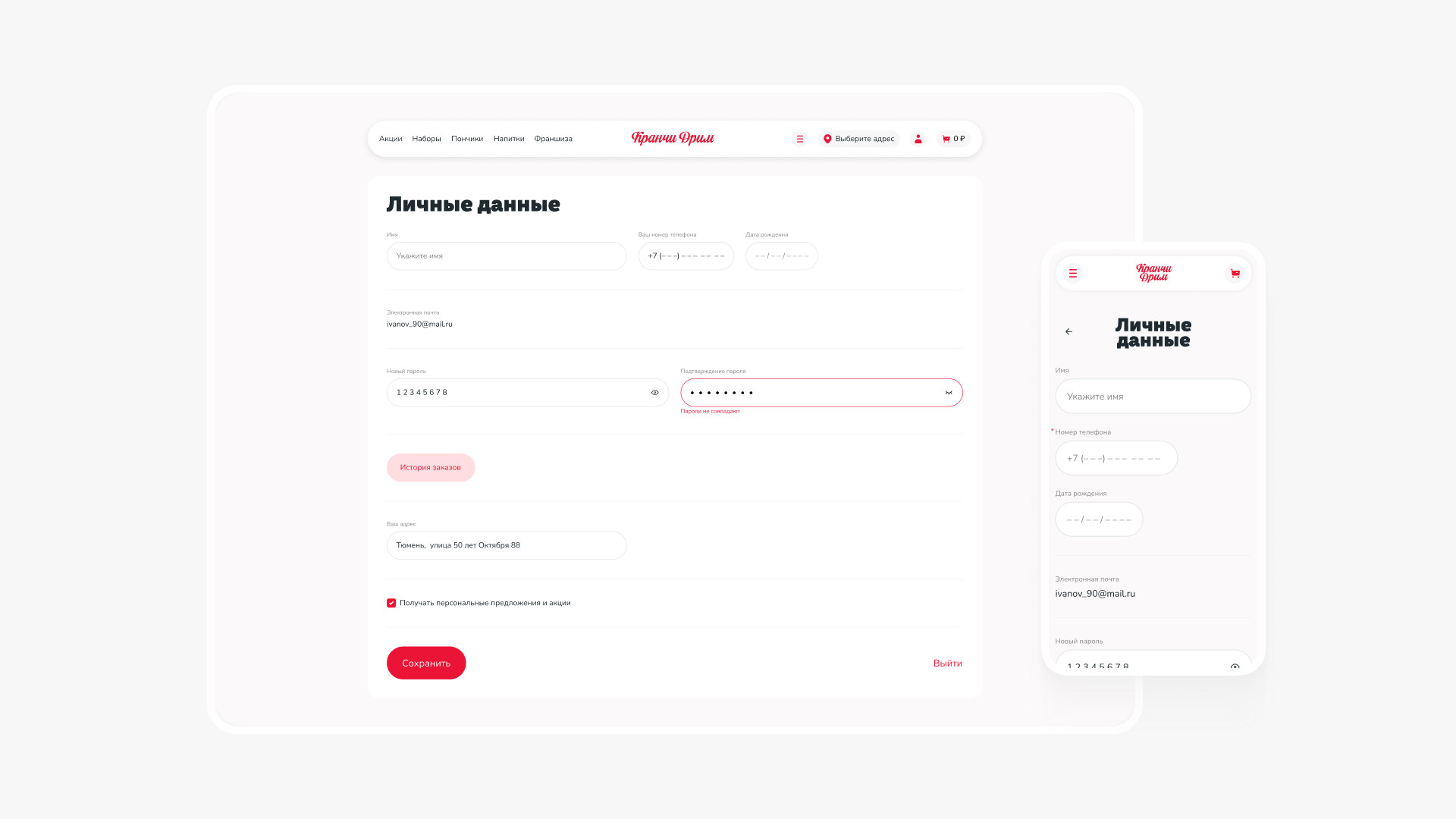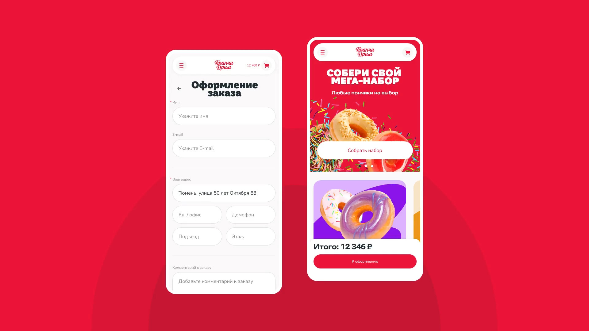 За брендингом ребята обратились к нашим друзьям — тюменскому агентству «Брендгруппа». Они сделали фирмак, а нас порекомендовали как ребят, кто сделает сайт) Кранчи Дрим пришли к нам на редизайн уже сущеcтвующего сайта. Прежний сайт был с морально устаревшим дизайном, не было удобной навигации, оформление доставки отваливалось на полпути. Так, пользователь уходил разочарованный и голодный, а компания теряла деньги. Разработать удобный современный сайт, с которым закроем два запроса заказчика: Сюда вошел набор страниц: главная (интернет-витрина), корзина, чекаут, личный кабинет с историей заказов. Ну и 11 модальных окон со страницами ошибок. Пошли по фреймворку. Определили 3 ключевых сегмента пользователей и их контекст. Составили джобы и выделили 17 ключевых гипотез, 15 глубинных потребностей и 18 болей. После этого нарисовали карту сайта, разработали CJM основных сценариев. Сделали прототип и затестили на пользователях. При разработке CJM мы изучили лучшие практики екома, применимые в нашем случае. Важно было учесть количество филиалов и франшиз кофейни. Пошли по модели интернет-витрины — чтобы сократить время пользователя на выбор и заказ набора пончиков. Сделали 2 разные ветки сценариев взаимодействия: Оставили только самое нужное: профиль и его данные, история заказов и их статусы. Вариант для тех, кто резко захотел пончиков и не хочет проходить регистрацию. Все решается в рамках одной страницы. Заказ пончиков можно сделать в три шага: выбрать набор из каталога → добавить в корзину → оплатить. А что если стандартный набор пончиков не подходит? Сделали фичу — «собрать свой набор». Собрать его можно в поп-апе прямо с главной страницы. При добавлении нужного количества в набор — есть возможность заказать пончики ко времени. У доставки возникает потребность продавать определенные позиции пончиков в большем объеме. Для этого мы придумали фичу — акционный набор: часть пончиков (которые необходимо продать) уже есть в заказе, а часть вы дособираете. Что сделали: Сочно, ярко, вкусно. Расставленные цветовые акценты — управляют вниманием и формируют необходимую реакцию у пользователя. Сделали дизайн-систему так, чтобы любой сотрудник смог обновлять контент на сайте. Про приемы: Для корзины отрисовали иллюстрашки, которые сделали человечными. В декабре релизнули сайт и вот ключевые метрики: Сейчас мы занимаемся сопровождением сайта и дорабатываем фичи, опираясь на метрику. Потыкаться на сайте 🍩 Приложения еще нет, возможно доберемся и до этого. А пока сохраняй «ярлычок» на экран через сафари и заказывай пончики 🤟 Ну после такого пора оформить заказ и делать свой мукбанг на видео)). Мы уже в процессе😅 Макс Пичугин — арт-директор Максим Бурлаченко — руководитель проекта Настя Селивестрова — дизайнер Юра Таранов — технический директор Ильшат Иркин — разработчик Иван Леонов — дизайнер Антон Лобанов — исследователь Кейсы на Dprofile Больше кейсов на сайте Не забывайте подписываться на наш телеграмчик