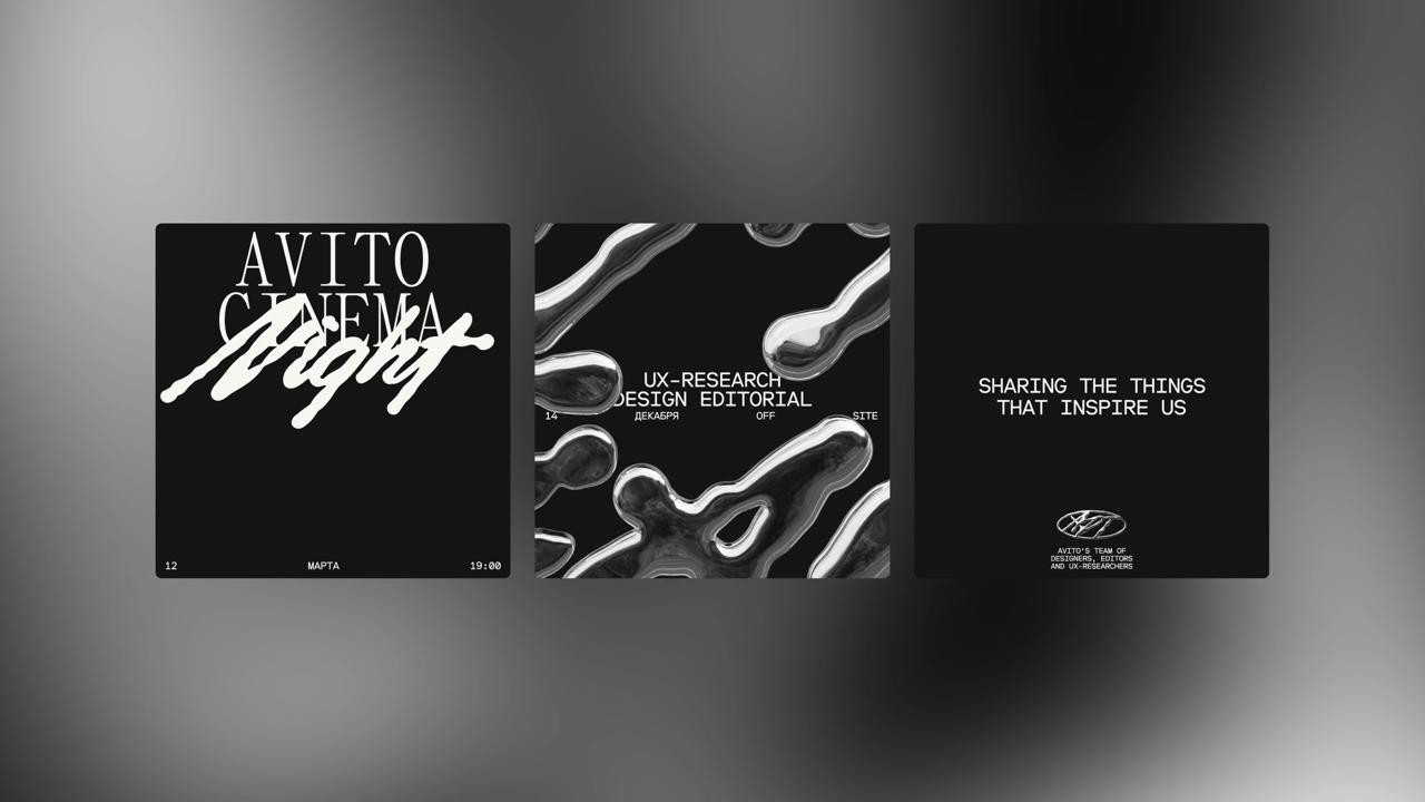 - Avito Design Team от ESH. Давайте забудем, насколько необычен стиль для Авито (это очень круто, просто сейчас не про то). Адское, интересное сплетение трёх, а может быть где-то четырёх шрифтов. Моноширинность, наложение, игра с хаосом и пустотой, разная выключка. Всё это задаёт то самое нужное настроение. Я помню и про рыцарскую эстетику, любимый многими dark fantasy core. Но что творит здесь типографика!