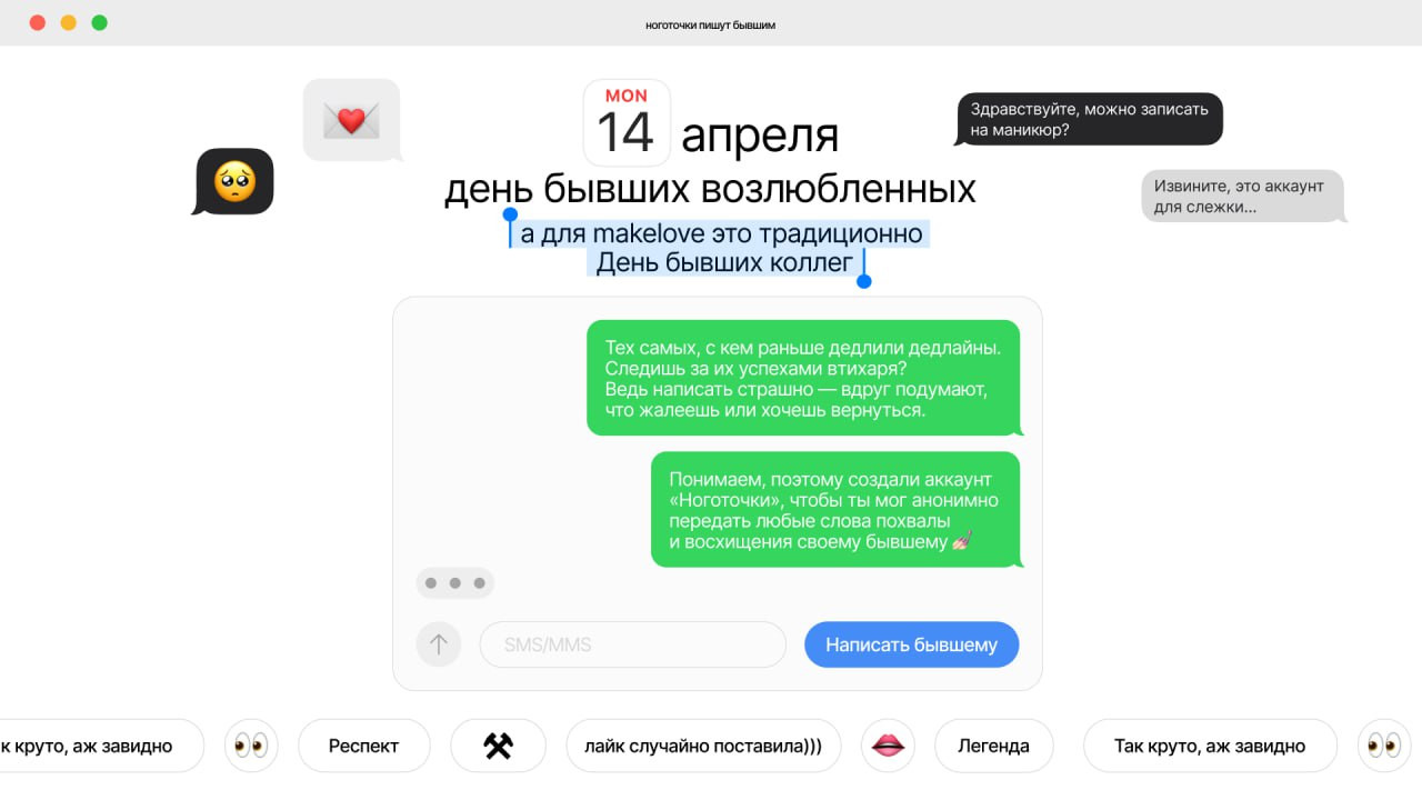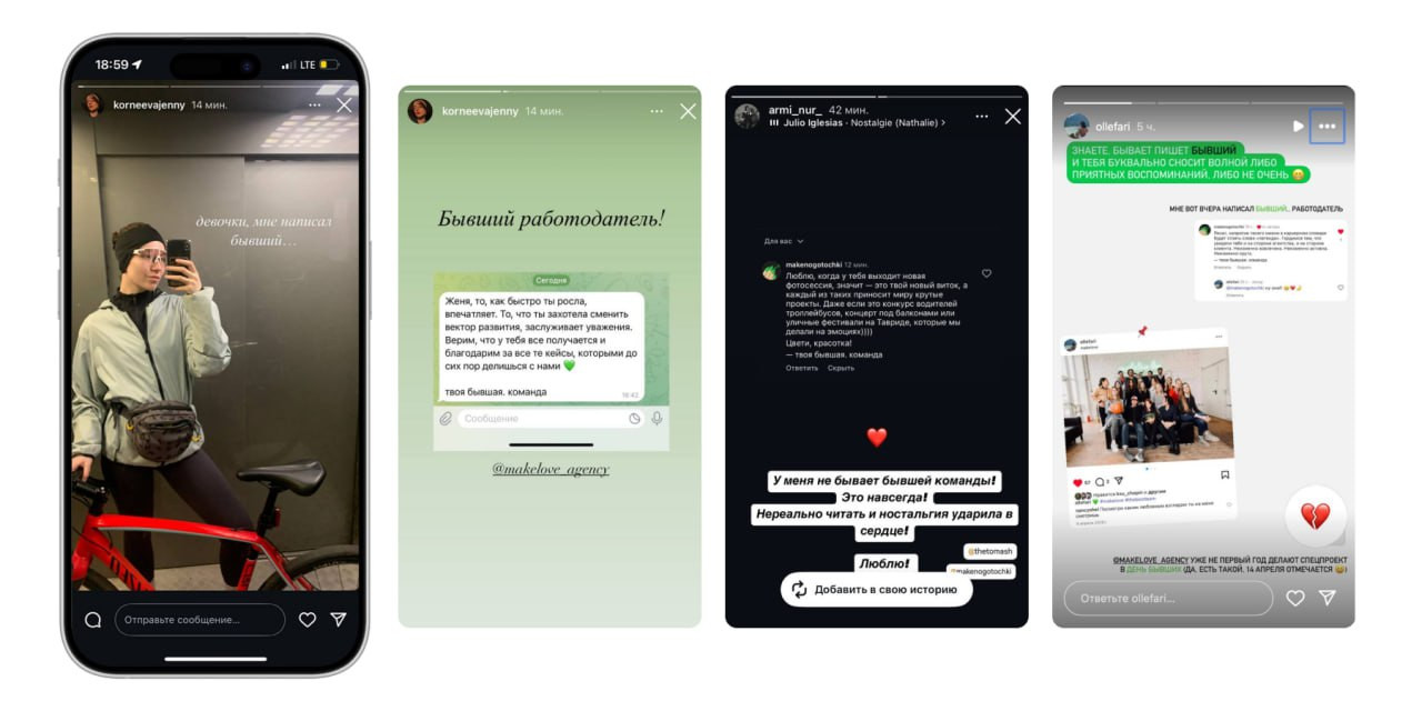 → Добавлю, что отчасти такая типографическая дерзость, творящаяся вокруг, стала возможна благодаря развитию генеративной графики. Именно с её помощью рождаются многие крышесносные проекты. Будем смотреть, что же там дальше! Софья Гаврилова — бренд-менеджер в employer-брендинговом агентстве makelove Как агентству продвинуть свой бренд работодателя? Мы в makelove разрабатываем бренды работодателей для крупных компаний: делаем активации на найм, креативные кампании, спецпроекты. Но также стараемся продвигать свой бренд работодателя. Наш TOV — открытый и дерзкий, мы ищем людей, которым важно не останавливаться на достигнутом, и всегда придумывать что-то новое. И наши проекты отражают эту идею. Расскажу про два моих любимых: Пошли с коллегами на концерт Агутина. И сделали из этого настоящий спецпроект: придумали слоганы, отражающие работу в makelove и пересобрали их на лад песен музыканта. Так получились легендарные фразы: «Ты знаешь, всё в твоих руках — и каннский лев! Если ты работаешь в makelove» «Хоп-хей ла-ла-лей, где вопросы, где ответы? Всё в агентстве makelove» и другие. Фразы с QR-кодом, ведущим на карьерный сайт, были на наших футболках. В результате охватили 70 000 человек аудитории, получили +300 подписчиков в запрещенной соцсети и просто повеселились) Инсайт: иногда события могут стать площадкой для продвижения вашего бренда. Цепляйтесь за каждый инфоповод и попробуйте придумать, как можно отразить ценности работы в команде через него. Написали бывшим. Несколько лет назад мы заметили, что в офисе остаются вещи бывших коллег: кто-то забыл забрать свою любимую кружку или оставил кеды. Тогда два наших креативных директора начали думать над спецпроектом про тех, кто уже не работает в компании (в то время еще было популярно продавать вещи бывших на авито). В итоге в makelove был основан новый день — день бывших коллег, и каждый год 14 апреля (хотя это день бывших возлюбленных), мы празднуем день бывших коллег и очень любим этот праздник. В этом году, например, мы связывали бывших через фейковый аккаунт Ноготочки. Любой желающий мог написать сообщение своему бывшему коллеге/руководителю, чтобы поблагодарить его или просто сказать «я скучаю». Мы анонимно доставлял весточки нужным контактам. Это создало настоящий инфоповод в HR-сообществе: многие каналы писали про проект, но самое важное — то, что нам удалось напомнить, как важно поддерживать связь с бывшими сотрудниками (а вдруг вернутся), а еще многие теперь вместе с нами празднуют день бывших 14 апреля). Проект мы сделали целиком внутри агентства. Бюджет в размере 700 рублей ушёл на симку и Telegram Premium. В результате получили 50 000 охвата, 10% из них — органически. Инсайт: личная история вашей компании, какая-то незаметная, на первый взгляд, деталь может вдохновить на классную идею и вырасти в очень крутой спецпроект! Людмила Чернуха — исполнительный директор брендингового агентства «Ферма» Потребительское поведение: как находить неочевидные инсайты и проверять гипотезы В мини-подкасте послушаем: Виктория Трубицина — старший дизайнер агентства Dotorg branding & strategy. Фотография как часть фирменного стиля Фотография — одно из выразительных средств дизайна как иллюстрация, типографика, логотип и цвет. Задача бренд-дизайнера — передать характер и ценности бренда, и фотография является одним из инструментов, позволяющих это с