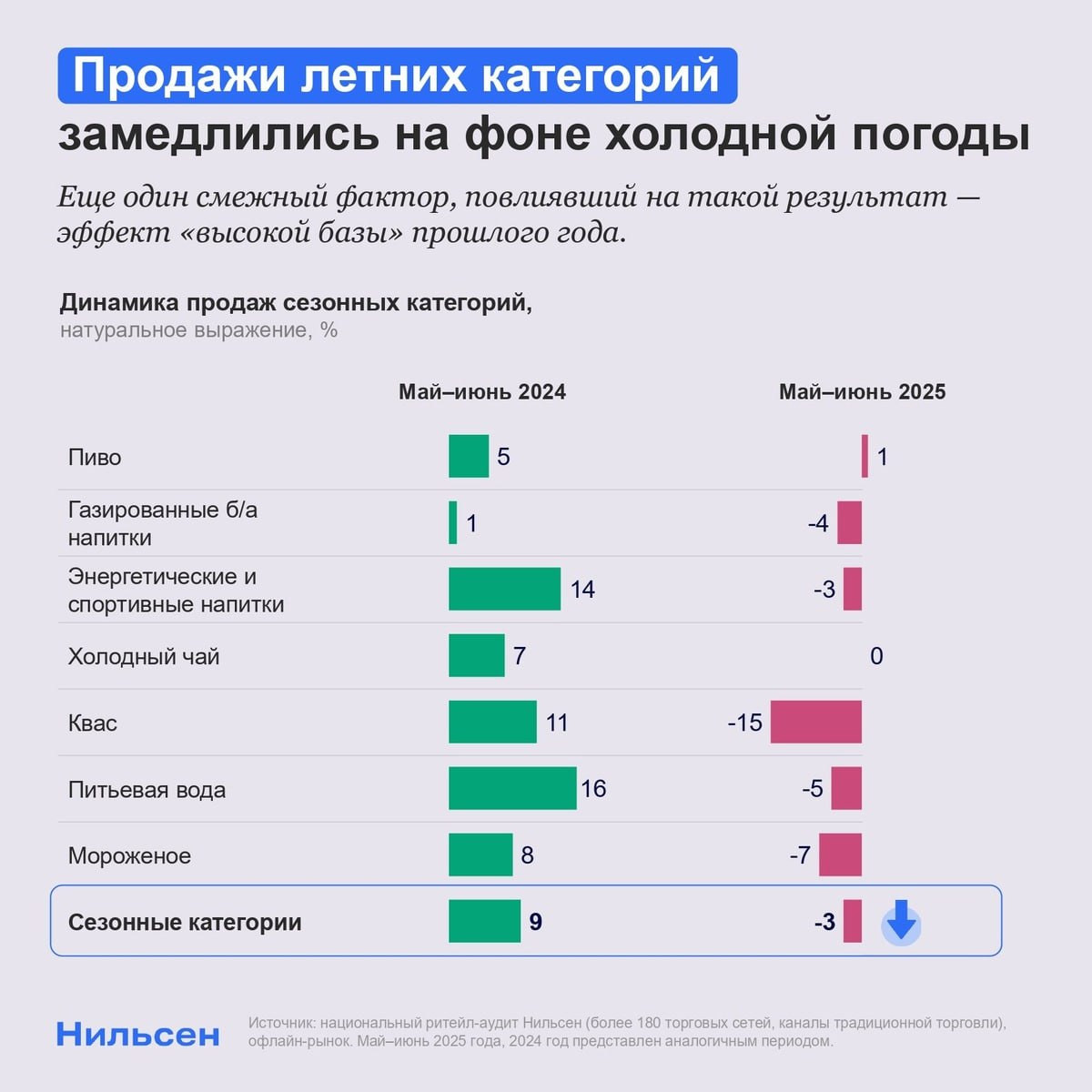 Соки, лимонады, холодный кофе падают; пиво +1%.