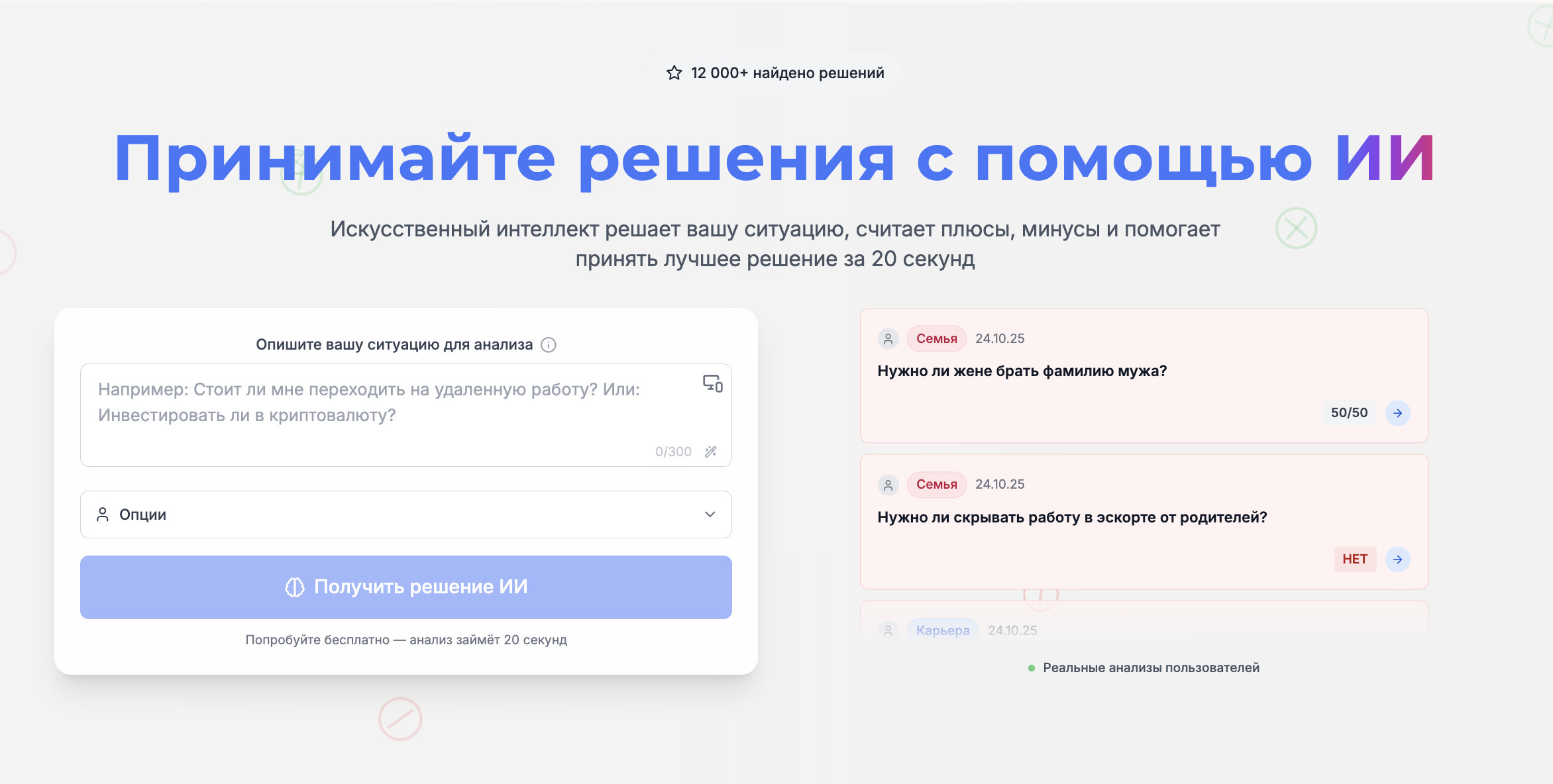 Именно для таких ситуаций создан Plinus — новый бесплатный сервис на базе искусственного интеллекта. Ваш карманный помощник в принятии решений, который помогает взвесить все плюсы и минусы, взглянуть на проблему со стороны и принять решение с холодной головой. Вы формулируете вопрос, а Plinus анализирует его и выдаёт список «за» и «против» вместе с общим вердиктом — «да» или «нет».