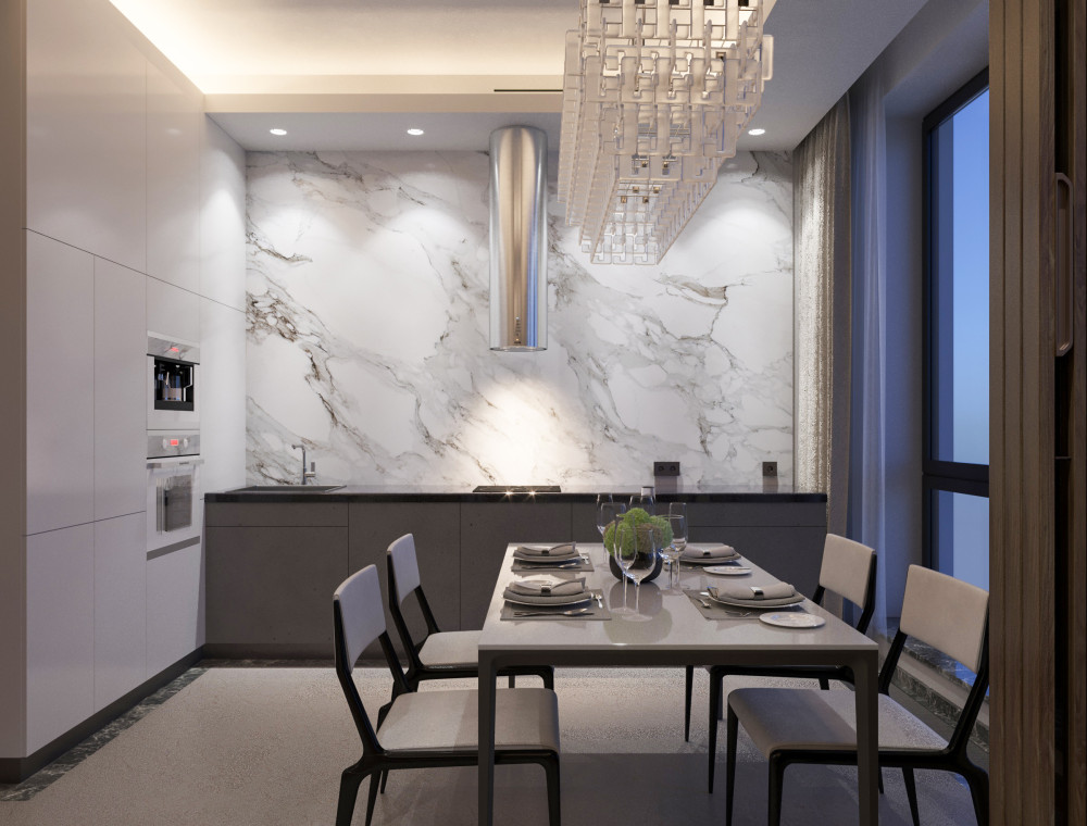 Несмотря на угловое расположение квартиры, окна выходят только на одну сторону. Из-за этого некоторые зоны (прихожая, гардеробные) остаются без естественного света.