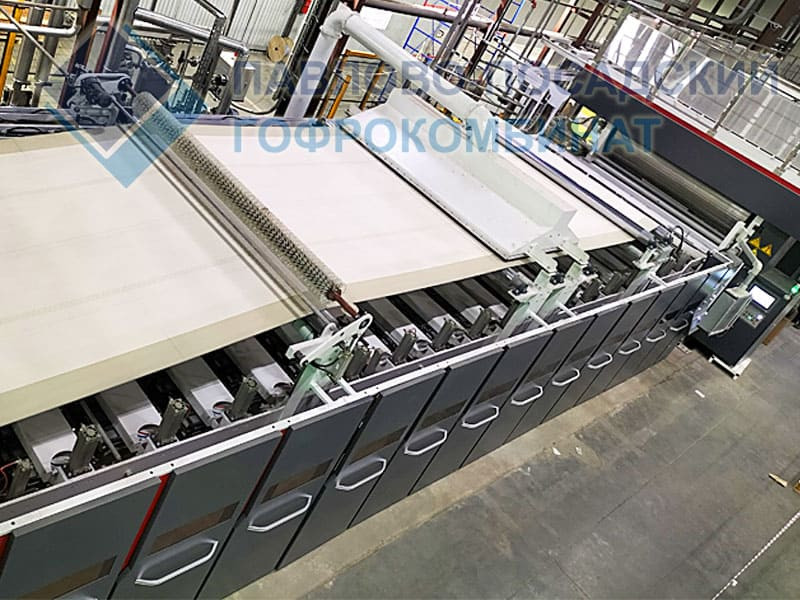 Новый гофроагрегат не просто запущен, он уже интегрирован в единый производственный цикл, объединяющий все процессы. Он соединяется с действующей автоматической транспортной системой, которая обеспечивает автоматизированный съем заготовки, ее распределение и доставку на перерабатывающие линии.