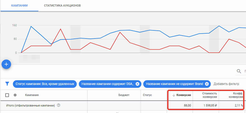 Начнем с того, что прохождение модерации в Google Ads для медицины — процесс всегда долгий и далеко не всегда успешный. Дело в том, что реклама медицинских услуг по-прежнему запрещена, и это настоящая боль для рекламодателей. Номинально можно рекламировать только медицинские учреждения без упоминания конкретных процедур. Существует ряд слов маркеров, которые запрещено включать в объявления, например: Но даже соблюдение всех правил не дает гарантий стабильной работы рекламных кампаний. Так, при подготовке кампаний для одного рекламодателей — сети клиник — мы учли все нюансы и сформировали максимально «безобидные» тексты. Параллельно нам надо было решить непростую задачу — увеличить релевантность объявлений: медицинский центр предоставляет много разных услуг, а сайт имеет разветвленную структуру с соответствующим количеством посадочных страниц. Это значит, что необходимо было найти баланс между строгими правилами и релевантностью заголовка объявления запросу пользователя. Примеры: Тем не менее часть рекламы сразу же получила статусы «отклонено» и «одобрено (с ограничениями)»: Что касается второго случая, не стоит обольщаться, так как оговорка «с ограничениями», по сути, сообщает, что реклама показываться не будет. Но даже те тексты, что полностью прошли модерацию, периодически отклонялись — на почту регулярно приходила пачка уведомлений об отклонении объявлений из различных кампаний. Очевидно, что ситуация неприемлема по двум основным причинам: По итогам поисков решения наш выбор пал на непривычный для этой тематики формат — динамические поисковые объявления или DSA. Почему DSA? Решено было сделать следующее: Чуть подробнее остановимся на целях динамической рекламы. Это, по сути, тот таргетинг, который заменяет ключевые слова в DSA: система связывает поисковые запросы пользователей с определенными страницами на сайте. Существуют различные источники таргетинга, в нашем случае уместно использовать индекс сайта в Google. Очевидная, но оттого не менее важная деталь: использование этого источника таргетинга подразумевает наличие целевых страниц сайта в индексе поисковой системы Google. Для каждой из кампаний (услуги) мы определили собственную цель по соответствию URL: На тестовом периоде в один месяц мы убедились в двух вещах: Таким образом, кампании с DSA были масштабированы на все услуги, и в итоге мы: Как следствие, за следующий месяц DSA принесли дополнительно 88 конверсий, каждая из которых стоила на 25% дешевле по сравнению с CPL в кампаниях по ключевым фразам. Стоимость обусловлена более дешевым трафиком. Поисковые РК по ключевым словам: DSA: Это позволило принять решение о дальнейшем масштабировании таких кампаний, и на данный момент на них отведена подавляющая часть бюджета в силу их эффективности. Что касается оптимизации кампаний, мы рекомендуем анализировать поисковые запросы и исключать пересечение целевых фраз, тестировать различные УТП в заголовках, использовать корректировки по устройствам и подключать аудитории. DSA считается средством автоматизации работы с рекламой интернет-магазинов. При этом мы убедились, что динамические поисковые объявления имеют более широкий спектр применения и могут решать нетипичные задачи в медицинской тематике. Необязательно иметь на сайте тысячи продуктовых карточек для корректной 