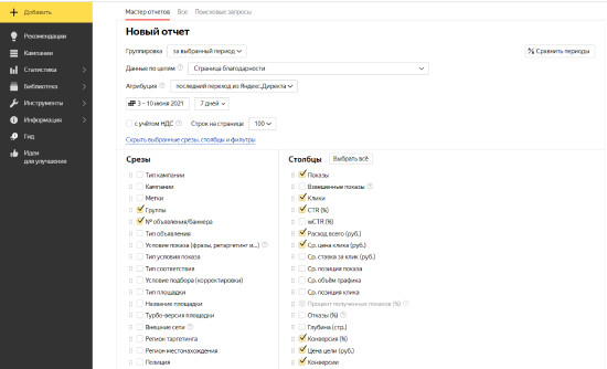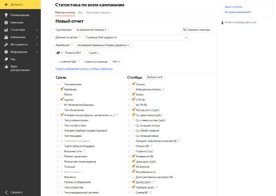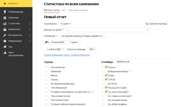 Работая с проектами с небольшими бюджетами, специалисты вынуждены тщательно отбирать таргетинги, аккуратно управлять ставками и практически ежедневно мониторить статистику по большому количеству срезов, чтобы найти наиболее эффективные решения и удалить всё, что съедает бюджет впустую. Для этого в Яндекс.Директе есть бесплатный инструмент «Мастер отчетов», который позволяет анализировать рекламные кампании по различным срезам и метрикам.
