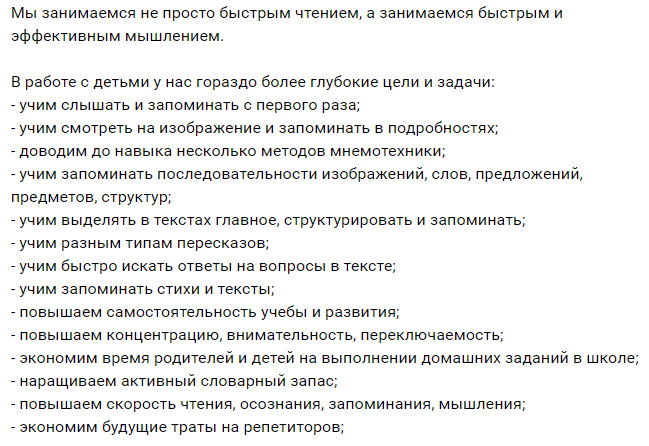 По курсам скорочтения и ментальной арифметике основной целевой сегмент — это платежеспособные, живущие в городах мамы 30–45 лет, у которых есть дети 5–15 лет. Они готовы вкладывать деньги в развитие своих детей — учить их быстро читать и считать, анализировать и запоминать информацию, улучшать память и концентрироваться на задаче.