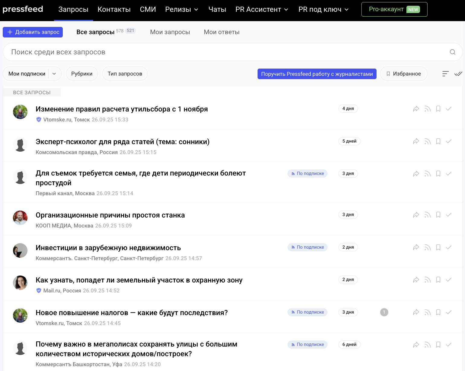 - Сотрудничество с журналистами. Один из рабочих инструментов — отвечать на запросы редакций. Журналисты публикуют их на сервисах вроде Pressfeed. Вы отвечаете, если комментарий толковый — он в статье. В итоге и бизнес в плюсе, и журналист не сидит с пустой страницей.