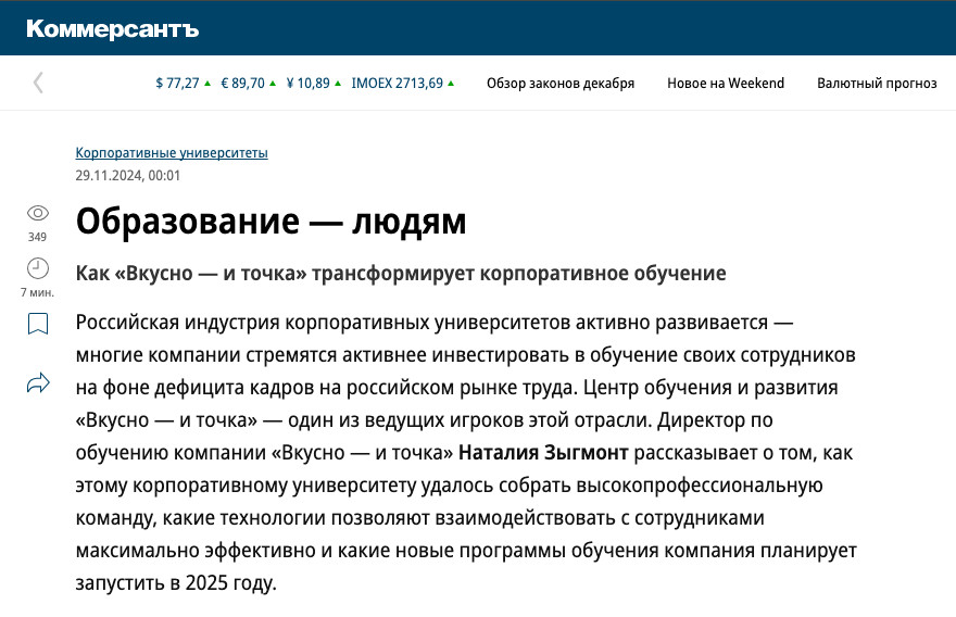 По запросам журналистов в Pressfeed можно не только подсматривать актуальные темы, но и сразу встроиться в новость: ответили на запрос — дали чёткий комментарий — попали в публикацию. Это реально самый быстрый путь выйти в медиа, даже когда своего инфоповода нет вообще. Журналист указывает, что ему нужно: вопрос, формат цитаты, дедлайн. Вы отвечаете прямо в сервисе, и редактор берёт самые релевантные ответы в статью. Через такую механику эксперты попадают в «Коммерсантъ», РБК, «Ведомости», «Комсомольскую правду» и сотни отраслевых медиа — больше 6000 редакций работают с сервисом. Для пресс-релизов это одновременно способ проверить повестку, адаптировать тему и дать комментарий, который выйдет быстрее, чем сам релиз. Цифры, факты, проценты, короткие формулировки без воды. Релиз должен опираться на официальную статистику, реальные данные и комментарии практикующих экспертов. Например: не «рынок растёт», а «по данным ЦБ число корпоративных кредитов выросло на 12% за квартал»; не «мы улучшили сервис», а «сократили время обработки заявок с 40 до 18 минут, что подтвердили результаты замеров за три недели». То же относится и к экспертным вставкам. Если вы пишете о правовом кейсе — добавьте короткий комментарий юриста; рассказываете об отраслевом тренде — пришлите ссылку на исследование. В материалах с такой фактурой журналистам проще работать: текст можно вставить в статью почти без правок. Если всего этого в тексте нет, он превращается в обычный маркетинговый лендинг, и редакции пролистывают его за секунду. Встречаются во всех типах релизов — от аналитических до продуктовых. Некоторые повторяются настолько часто, что уже стали классикой жанра. Вот пример фразы, которая убивает релиз уже на второй секунде: «Мы рады сообщить, что наша компания активно развивается...». Журналисты за вас очень рады, конечно, но новости здесь не выжмешь. Самое частое замечание журналистов: «Слишком рекламно» или «Нет общественной значимости». Если релиз рассказывает о том, как компания сама для себя что-то улучшила, но не объясняет, почему это важно для читателей, он 100% попадет в корзину. Принцип простой: рассказываем не о себе, а о пользе. Запуск корпоративного университета — скучно. Запуск программы, которая закрывает кадровый дефицит в регионе и уже помогла устроиться 40 специалистам — инфоповод. Журналисты реагируют именно на такие истории, потому что их читатели реагируют на них. Наглядный пример. Посмотрим на новость о запуске корпоративного университета. На сайте компании продуктовый заголовок, новость исключительно внутри бренда. Такая будет интересна в лучшем случае сотрудникам компании. А теперь та же новость, но в «Коммерсанте». Здесь на первый план выходит не то, какой бренд молодец, а глобальная проблема корпоративного образования и то, как это влияет на кадры. Вот такую новость откроют и прочтут. Как исправить Начинайте с сути: что случилось, где цифры, факты, интерес и польза для читателей. Уберите воду и задайте себе один вопрос: почему аудитории должно быть до этого дело? Это другая проблема. Здесь уже не про «пользу», а про то, что в релизе просто нет события. Редакции не публикуют заявлений уровня «Мы улучшили клиентский сервис». Это внутренняя информация, но не новость. А вот «Компания протестировала алгоритм, который сократил время ответа на 3