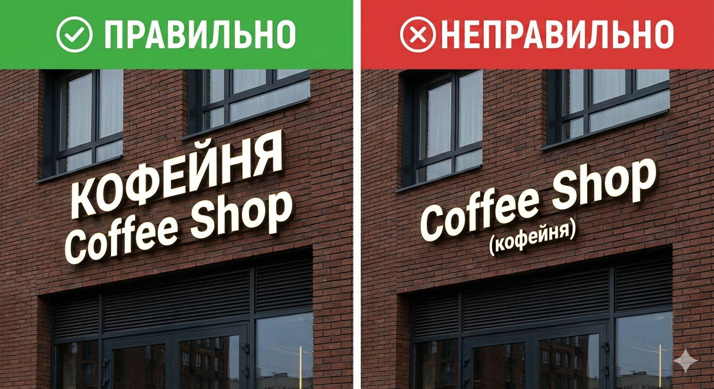 Требования к вывескам на русском языке: как правильно дублировать названия