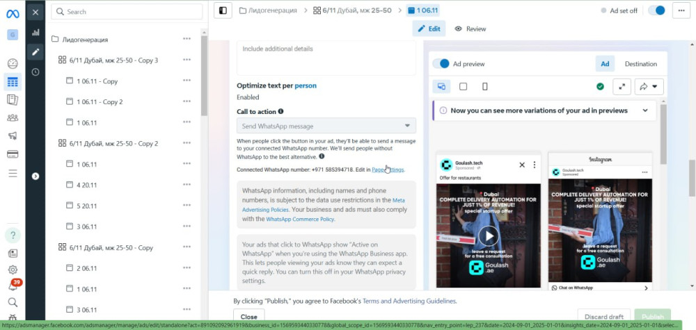 Аудит связки: креатив → лид-форма → WhatsApp.