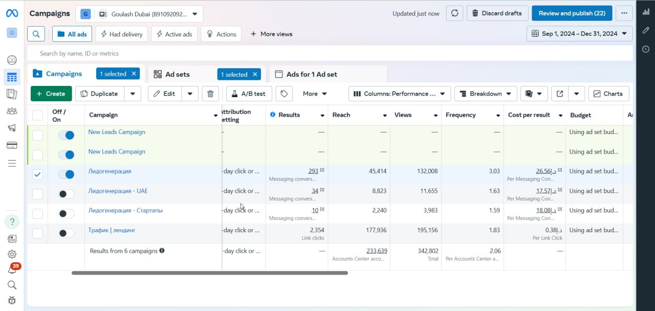 Кампания была запущена, но стоимость релевантного лида доходила до dh103.