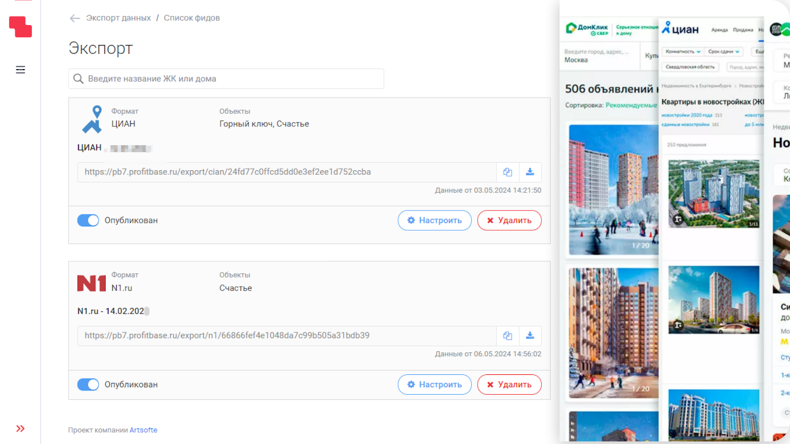 Систематизировали выгрузку на классифайды через Экспорт данных