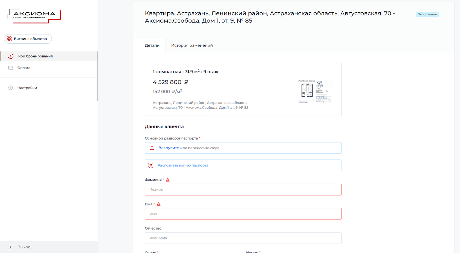 - И оцифровать клиентский путь: от выбора квартиры до бронирования.