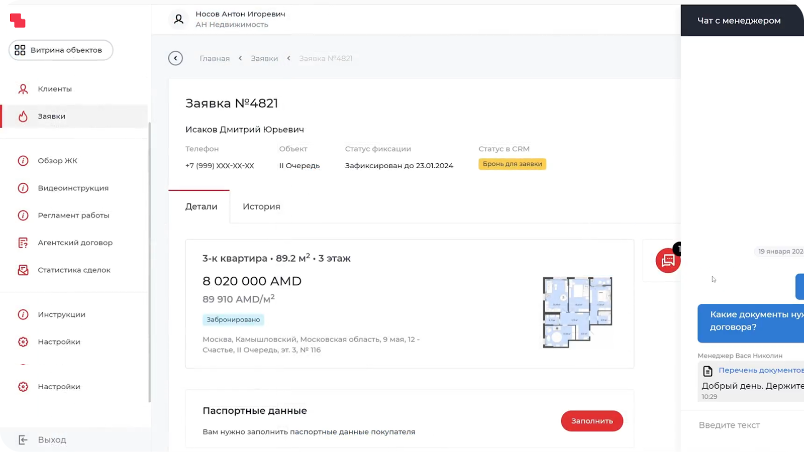 Теперь у нас все сделки проходят от начала до конца в CRM — с отображением ФИО клиента, стоимости квартиры, паспортных данных. Мне не нужно открывать Excel, чтобы получить нужные данные. Для меня лично работа со сделками стала намного быстрее.