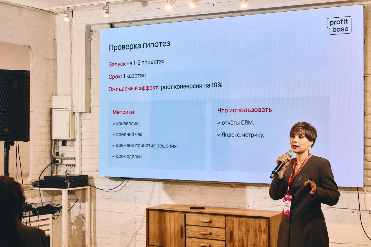 Менеджер продукта Profitbase в своём докладе сделала акцент на необходимости персонализации и тестировании гипотез: