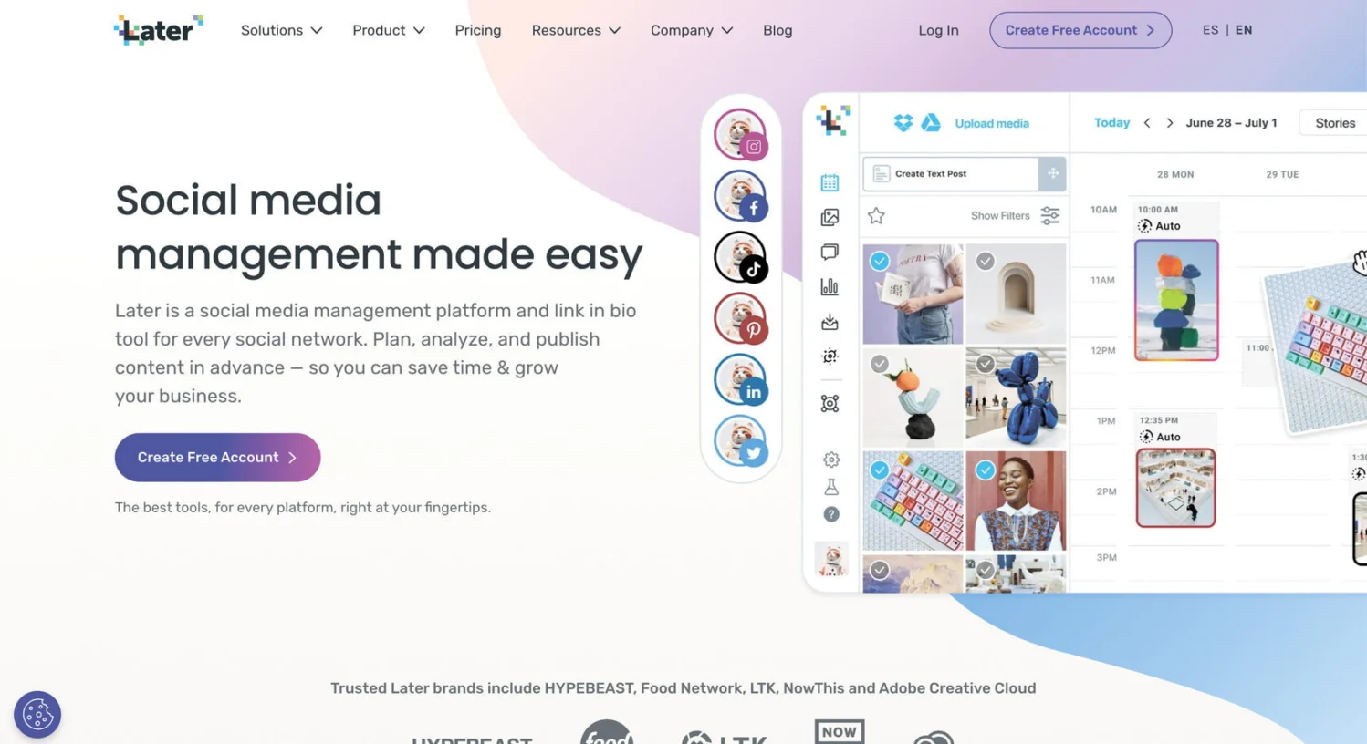 Later — это инструмент для планирования и анализа контента в Instagram. Он предлагает функции планирования публикаций, анализа метрик и визуального планировщика сетки. Later предоставляет возможность просматривать и планировать контент заранее, а также отслеживать показатели производительности, такие как вовлеченность и охват.