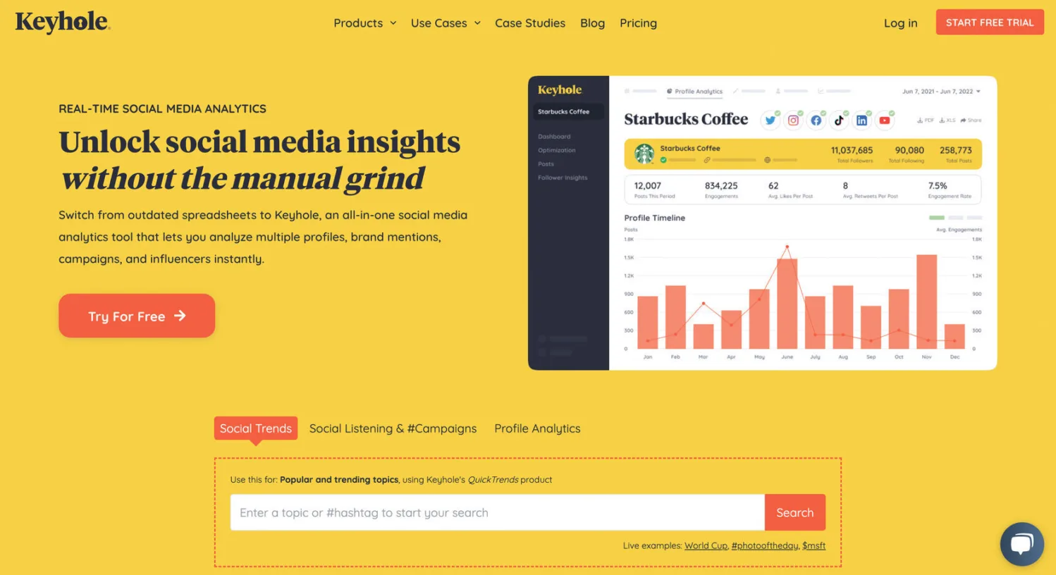 Keyhole — это инструмент аналитики социальных медиа, который также поддерживает анализ Instagram. Он предлагает отчеты о хэштегах, анализ конкурентов и мониторинг вовлеченности. Keyhole помогает вам понять, какие хэштеги наиболее эффективны для вашего контента и как ваша аудитория взаимодействует с ним. Он также предоставляет информацию о конкурентах и анализе их производительности. Цены на Keyhole начинаются от $49 в месяц.