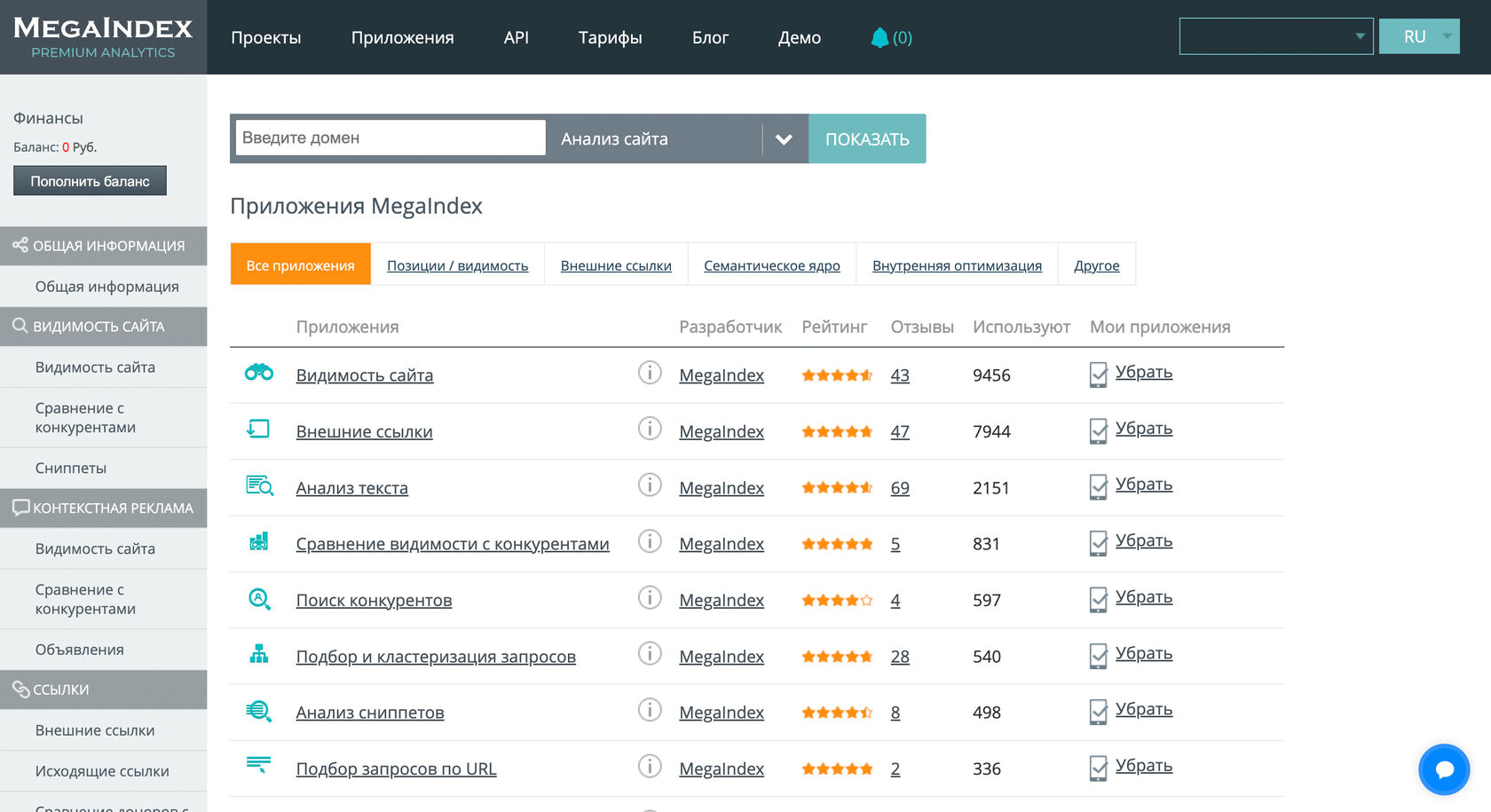 Megaindex — это комплексный сервис для анализа сайтов, поиска ключевых слов и контроля позиций в поисковой выдаче. Он предоставляет информацию о позициях сайта, анализирует конкурентов, обратные ссылки и ключевые слова. Megaindex также предоставляет инструменты для анализа контента, улучшения SEO-показателей и определения успешных стратегий продвижения. Сервис помогает повысить видимость сайта в поисковой выдаче и увеличить трафик.