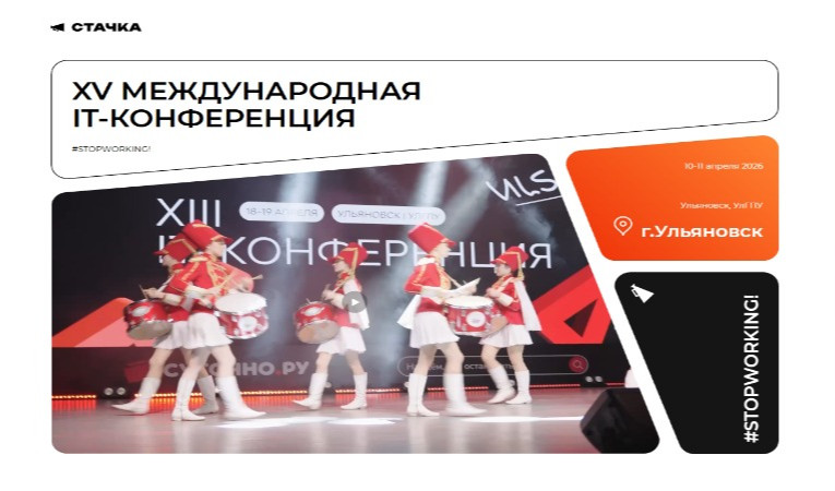 10 апреля стартует конференция На Стачку. Крупнейшая региональная IT-конференция России. Собираем более 3 000 специалистов ежегодно — разработчиков, маркетологов, дизайнеров, руководителей и собственников IT-компаний.