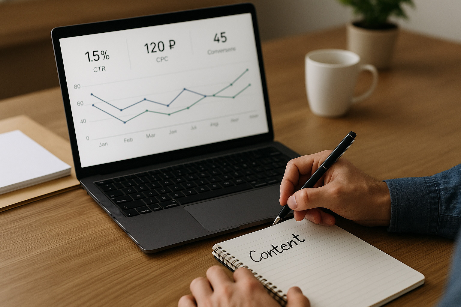 - Первые статьи были слишком «журнальными» — красивые, но без прямого указания на товар. Конверсия почти нулевая.