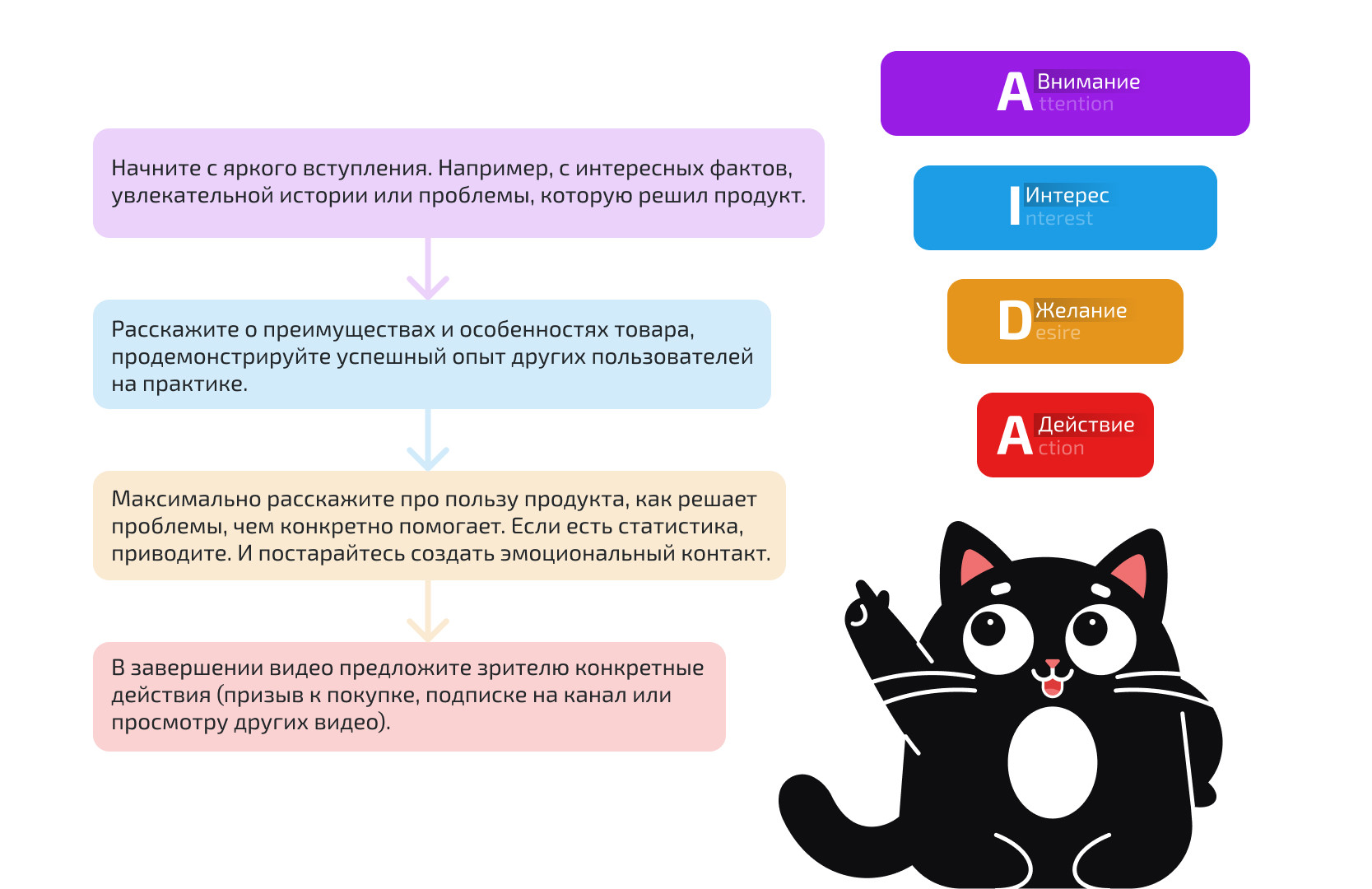 Видеообзоры прекрасно чувствуют себя на сайтах компаний, где обитает заинтересованная целевая аудитория. Именно ролики на сайтах сейчас — мощный инструмент конверсии и вовлеченности. Правда, выбор сервисов пока не такой уж большой, но рынок развивается. Перечислим лишь несколько основных фишек видеовиджета QForm, а вы берите на заметку. Все фичи мы опробовали сами и убедились в их эффективности с помощью наших пользователей. Сразу предупреждаем: пробуешь один раз и уже не можешь отказаться. Да и не стоит, ведь на сайте можно размещать любое количество роликов. Теперь к основам — без понимания ЦА можно снять хоть миллиард видеообзоров и ни разу не зацепить. Ибо нужно правильно целиться: в боли, страхи, желания, предпочтения аудитории. Тогда ролики будут отвечать ее интересам, а значит гарантированы досмотры, рост вовлеченности и конверсии. Попробуйте наложить на сценарий формулу AIDA (внимание | интерес | желание | действие) — классический маркетинговый подход для любого продающего контента. Вот как можно применить для видеообзора любого товара от сладостей до гаджетов или автомобилей: Не стоит снимать слишком длинные видео. Аудитория привыкла к такому формату, как ролики в сторис или TikTok. Удержать внимание дольше 60 секунд сложно. Но за это время как раз можно показать товар со всех сторон. Поднесите его к объективу, поверните, покажите изнанку, детали, ярлычки. Если снимаете обзор услуги, можно запустить в виджет ролик с таймлапсом под музыку. Например, о сборке мебели или о работе клининговой компании.
