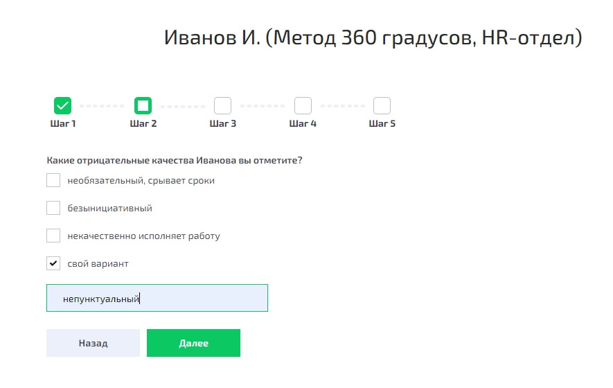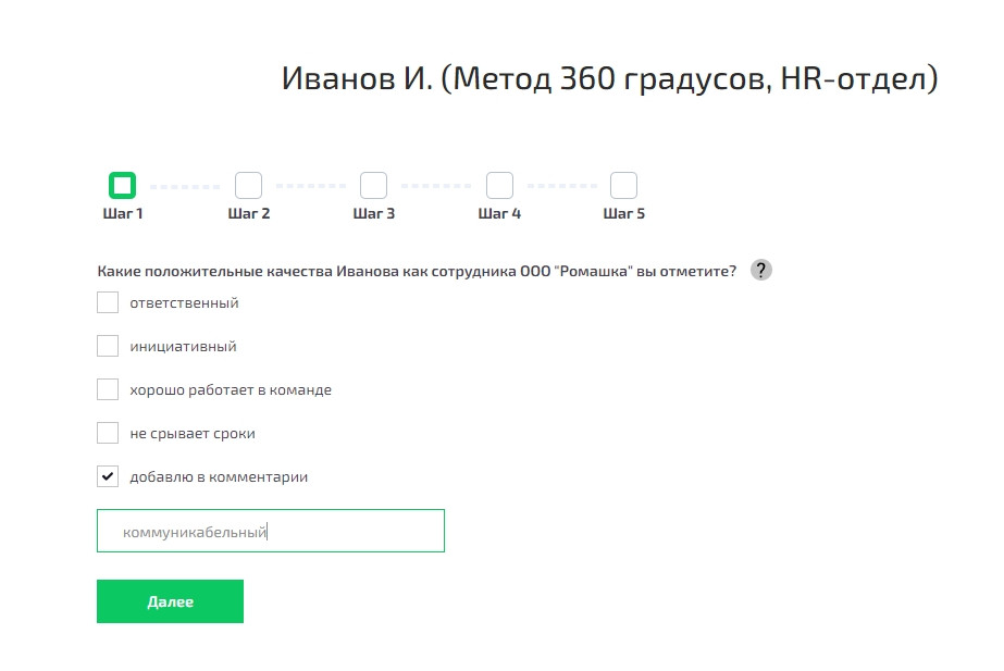 Опрос сотрудников проводится регулярно на основе анкеты. Результатом станут объективные сведения для оценки и развития персонала. Метод «360 градусов» вкратце: По итогам определяют зоны роста, развивают конкретные компетенции, назначают обучение для коллег. Все это делается для того, чтобы в итоге улучшить атмосферу в коллективе, повысить лояльность сотрудников. Почему выбирают именно этот способ? Недостатки тоже есть: Обычно опрос включает две части. В первом блоке оценивают сотрудника по шкале. Во второй части предлагается ответить на открытые вопросы с возможностью оставить комментарий: например, похвалить коллегу или порекомендовать, на что стоит обратить внимание. Мы рекомендуем учитывать при создании анкеты эти пункты: Вы сами выбираете, каким методом проводить опрос. Например, старым добрым способом — вручную на листочках. Есть еще гугл-формы, но могут возникнуть проблемы с безопасным распространением и хранением данных. Советуем выбирать для этих целей простой конструктор, который быстро и безопасно собирает данные; обязательно с аналитикой, считающей ответы, потому что вручную это делать не очень удобно. К примеру, конструктор QForm. Варианты для сотрудников: Составьте анкету удовлетворенности сотрудников с помощью квиза. Это просто и удобно: не придется проводить переговоры лично с каждым сотрудником, особенно если многие работают на удаленке. Вы забудете про заполнение и проверку вручную бумажных анкет, для этого есть онлайн-опросы. Полученные данные можно использовать по-разному: корректировать бизнес-процессы, планировать карьеру, обучение и развитие сотрудников, мотивировать команду, чтобы она работала еще эффективнее. Для сбора обратной связи используйте конструктор квизов. Наш сервис QForm отлично подходит для этих целей. Мы собрали в нем инструменты, которые позволяют бесплатно создать анкету на сайт на любую тему за 5-10 минут. Для вашего удобства созданы все условия: у вас есть возможность продумывать вопросы и опции, в каком порядке их выкладывать, добавлять разные варианты ответов: один, несколько, с развернутым комментарием. В конструктор включены готовые элементы: чекбоксы, кнопки с числами, переключатели, выпадающие списки, удобные дополнения в виде ссылки, текстов или изображений. «Метод 360» заметно повысит производительность сотрудников и поможет создать эффективные планы их развития. Чтобы облегчить вам задачу, рекомендуем попробовать создать квиз на QForm прямо сейчас. Зарегистрируйтесь и скоро увидите результат!
