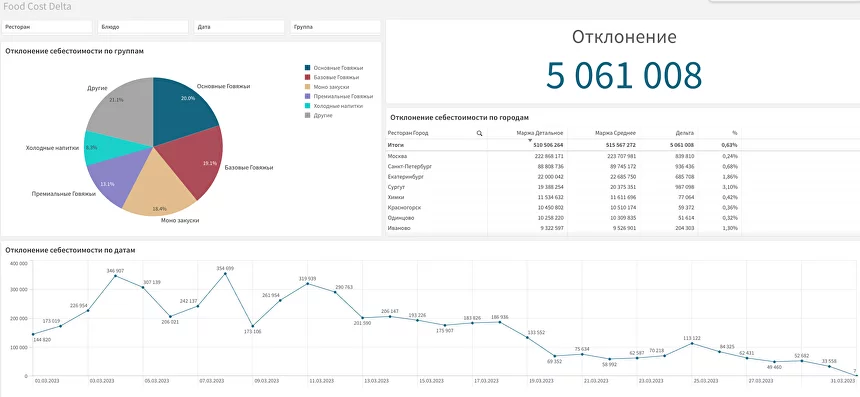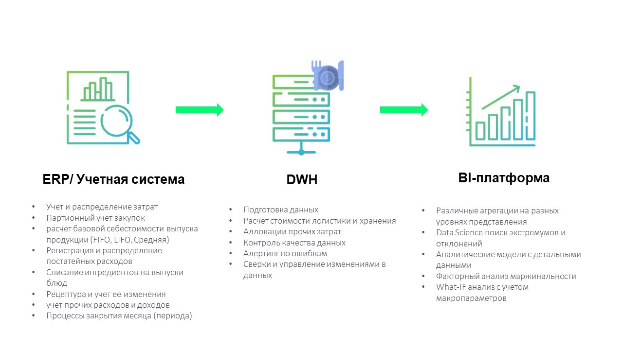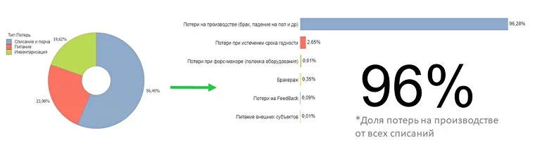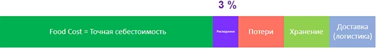 Фудкост показывает, какой процент стоимости блюда потратили на продуктовую составляющую и считается по базовой формуле: Но есть нюансы: считать себестоимость блюда действительно можно по-разному. При расчете себестоимости важно учитывать разные расходы, возникающие при производстве: стоимость сырья, транспортные расходы, коммунальные расходы, списания, и прочие, в зависимости от сложности производства. Существует три основных метода расчета себестоимости: (англ. first in, first out — первый пришел, первый ушел) В нем используется принцип очереди: первыми списываются товары, которые были поставлены раньше (англ. last in, first out — последний пришел, первым ушел) Согласно этому методу, товары, которые поступили в последнюю очередь, следует первыми списать с учета. Данный метод предполагает расчет себестоимости товаров по среднему арифметическому. При этом данные, из какой конкретно поставки списался товар, не отображаются. В базовом расчете все затраты на приобретение, доставку и хранения продуктов, из которых готовятся блюда, делятся на выручку. Получаем процент от продаж, который показывает общий уровень затрат. Информация при таком расчете максимально не детализированная, но по ней мы можем понять нормирование показателей в среднем по отрасли по разным типам заведений. Общепринятые нормы фудкоста Опытные владельцы заведений не советуют бездумно гнаться за низким фудкостом: есть риск потерять качество продуктов или сервиса, а вместе с этим — клиентов, потому стоит учитывать все составляющие затрат. Доставка и хранение Продукты необходимо привезти от поставщика в непосредственное место производства блюд, а значит может потребоваться пункт промежуточного хранения. У нас появляются две дополнительные статьи расходов, которые можно выделить из общих затрат: логистика и хранение. Рассчитать стоимость доставки порой непросто. Она может включаться в стоимость блюд или рассчитываться отдельно за месяц, тогда нужно распределять ее по отдельным продуктам. Есть несколько способов расчета логистики/ хранения: Потери производства Потери объединяют в себя несколько блоков: результаты инвентаризации, потери при производстве, питание сотрудников. Основные статьи потерь, как правило — списания и порча, недостача, пересортица. Ниже представлена некоторая статистика основных потерь. Все ли их вы учитываете при расчете себестоимости? Расходники Еще примерно 3% от себестоимости уходит на расходные материалы и продукты: упаковку и технологические списания (жир для готовки во фритюре, специи и т.д.) Почему так важно понимать конечную себестоимость, учитывающую все вышеперечисленные затраты? На каждом этапе все эти затраты можно сократить, но важно знать где и что оптимизировать: Как правило все ошибки расчета себестоимости можно разделить на 2 группы: проблемы на уровне ERP и проблемы на уровне данных. На одном из проектов для крупной сети ресторанов мы формировали отчетность по выручке для отдела маркетинга, и встал вопрос о подсчете маржи. Для расчета заказчик предоставил данные по себестоимости в разрезе блюд, но показатели оказались одинаковыми за все время, так как подсчет велся усредненно. Что делать: настроить процессы в ERP и backoffice — лучше всего работает партионный учет, тщательнее работать с документами отгрузок Один из наших заказчи