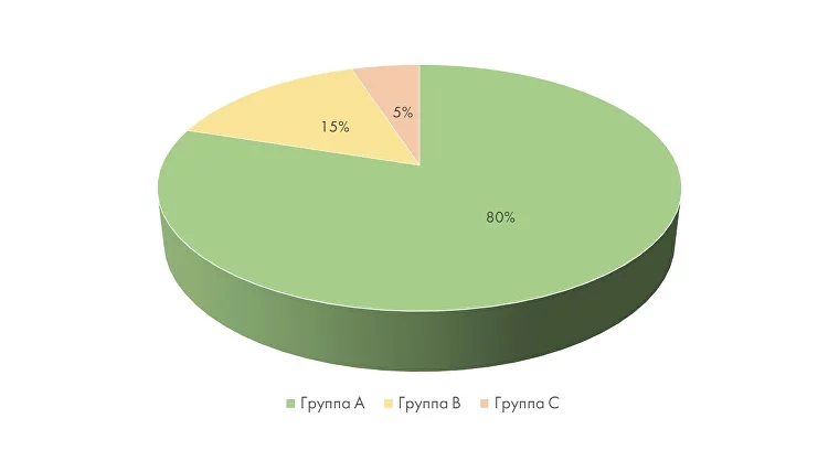 - Категория А — наиболее важные товары, которые обеспечивают максимальный эффект. Их страховые запасы требуют тщательного планирования и контроля, ведь их отсутствие приведет к существенному снижению выручки.