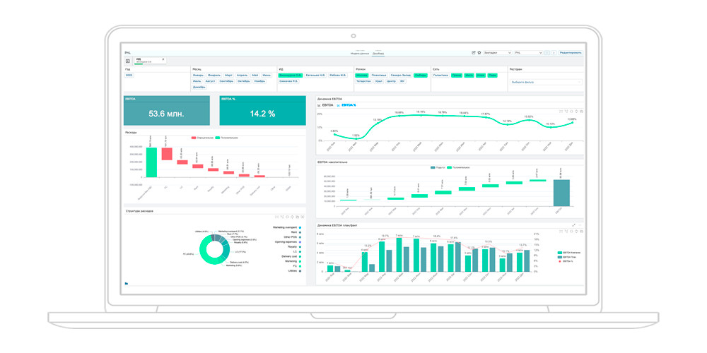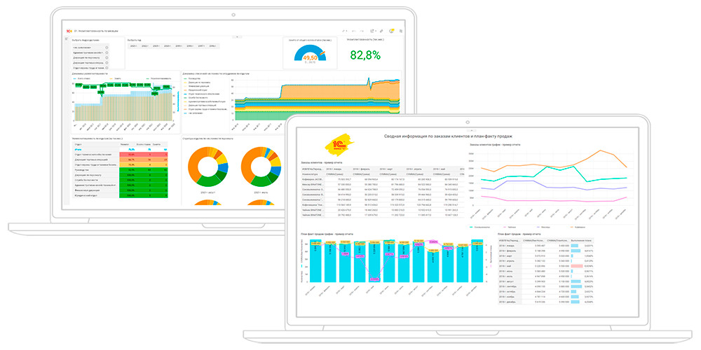 1C предлагает и свой продукт для бизнес-аналитики — BI-систему 1С: Аналитика, которая является частью платформы 1С: Предприятие 8 и предназначена для управленческого учета.