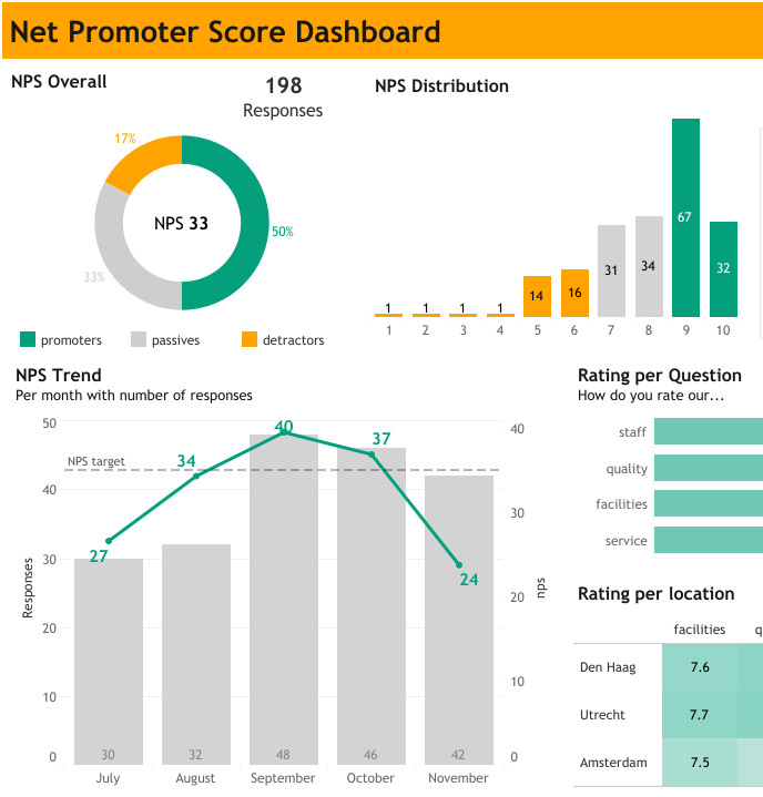Для вычисления NPS из процентного соотношения лояльных клиентов (кто поставил оценки 9-10) вычитается процентное соотношение нелояльных клиентов (кто поставил оценки 0–6). Для получения практических выводов можно собрать комментарии клиентов о том, что именно их не удовлетворяет. Комментарии помогут определить наиболее важные факторы, влияющие на формирование потребительской лояльности и вовремя их скорректировать. Рекомендуется регулярно, хотя бы раз в месяц, проводить такие опросы среди части постоянных клиентов (10% от всех клиентов). Чем выше индекс NPS, тем лучше. Хорошим результатом считается значение более 30%. Показатель варьируется в зависимости от отрасли, и лучше оценивать показатель в сравнении с конкурентами. Показатель NPS позволяет в короткие сроки получить обратную связь от покупателей и свидетельствует о том, как компании и их сотрудники обращаются со своими клиентами. Применение данного показателя совместно с соответствующей диагностикой и результирующими действиями способствует улучшению лояльности клиентов и обеспечивает рост прибыли. Исследования показали связь высоких значений NPS с темпами роста компаний при сравнении с конкурентами. В большинстве отраслей этот один простой показатель объясняет большую часть отклонений относительных темпов прироста. У компаний с лучшим соотношением лояльных и нелояльных клиентов темпы роста более быстрые, чем у конкурентов. Следует обратить внимание, что некоторые специалисты считают методологию показателя лояльности клиентов статистически незначимой, так как ответы распределяются всего лишь в три группы. *** Ключевые показатели эффективности (KPI) используются для понимания текущей ситуации в бизнесе: оценки успешных результатов и выявления областей, на которые следует обратить внимание. Грамотная оценка эффективности поможет совершенствовать продукты и услуги, получить новые конкурентные преимущества, своевременно выявлять тенденции и предсказывать события. Команда Qlever Solutions разработает наглядные дашборды для детального анализа клиентских KPI