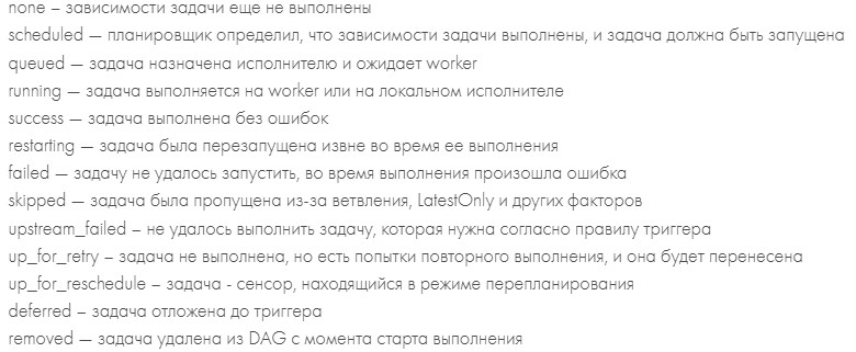 Зачем бизнесу нужны хранилища данных? Для этой цели недостаточно использовать простую базу данных, так как в отличие от БД корпоративные хранилища: Cохраняют исторические данные в хронологическом порядке и агрегированные значения, в отличие от БД, которые подходят только для обработки транзакций Данные в них хранятся в соответствии с описываемыми областями, а не используемыми приложениями Объединяют данные различной природы, форматов, типов, являющиеся аспектами предметной области, а не отдельных функций Для обеспечения единой версии правды и корректности аналитики данные в хранилище не создаются и не удаляются, изменения можно произвести только в источнике Транзакционные базы данных и OLTP- системы (системы оперативной обработки данных), к которым относятся ERP, SCADA, банковские системы и т.д., являются основным источником данных для хранилищ. Также данные в хранилище поступают из любых других источников структурированных данных: Excel, текстовых файлов с разделителями TXT, CSV, учетных систем 1С, API и прочих. Перенос данных из источников в хранилище и их предварительная обработка реализованы с помощью ETL/ELT-процессов. В хранилище данные распределяются на слои: Готовые для анализа данные поступают во внешние инструменты отчетности и визуализации, BI-платформы, аналитические системы. В результате получается многоуровневая слоеную архитектура LSA (Layered Scalable Architecture), где каждая из частей системы состоит из технологий и инструментов, выполняющих конкретные функции. Оркестраторы занимают центральное место в архитектуре хранилищ данных, обеспечивая управление и координацию всех процессов перемещения, обработки и загрузки данных. Оркестратор управляет полным циклом процессов: Оркестратор запускает все эти задачи строго в нужной последовательности, с учётом зависимостей и установленного расписания. В слоеной структуре хранилища LSA оркестраторы отвечают за перемещение данных между слоями Raw / Staging, Core / ODS, Data Marts, отслеживая, какие таблицы пересчитываются, и в каком порядке Оркестраторы могут отвечать за: Оркестраторы запускают и управляют ETL- процессами, которые формируют витрины данных для BI-дашбордов, запускают проверки качества данных, тесты и оповещают о нарушениях. Также оркестраторы управляют последовательностью до- и пост-обработок, обучением моделей, оценкой, бенчмарками, запускают процессы переобучения при расхождении данных, управляют деплоем моделей. Apache Airflow — один из самых известных и используемых open source оркестраторов ETL и DWH-пайплайнов. Был разработан в 2014 году и до сих пор считается «золотым стандартом» оркестрации процессов. Основная сущность Airflow — DAG (Directed Acyclic Graph) — направленный ациклический граф — набор задач, упорядоченных по зависимостям, где каждая задача может быть выполнена только после того, как завершатся все необходимые предыдущие. «Направленный» (directed) означает, что зависимости имеют чёткое направление (одна задача идет после другой), а «ацикличный» (acyclic) — что в графе нет циклов: одна и та же задача не может зависеть от самой себя, даже косвенно. DAG представляет собой Python-скрипт, который состоит из: Airflow предлагает как широкий выбор встроенных операторов, так и возможность добавления пользовательских. Начиная с версии 2.0. наряду с операторами можно использовать TaskFlow API, который упрощает создание пайплай