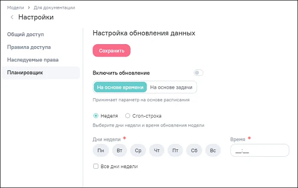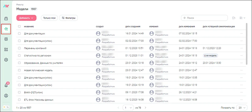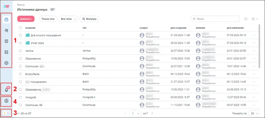- Разработчик — создание и изменение моделей данных, подключение источников данных