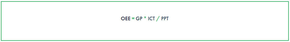 где GP — Выпуск качественной продукции (Good Pieces), произведенной за операционное время OT. OEE как совокупность перечисленных критериев вычисляется по формуле: или, при замене критериев на метрики из предыдущих формул: