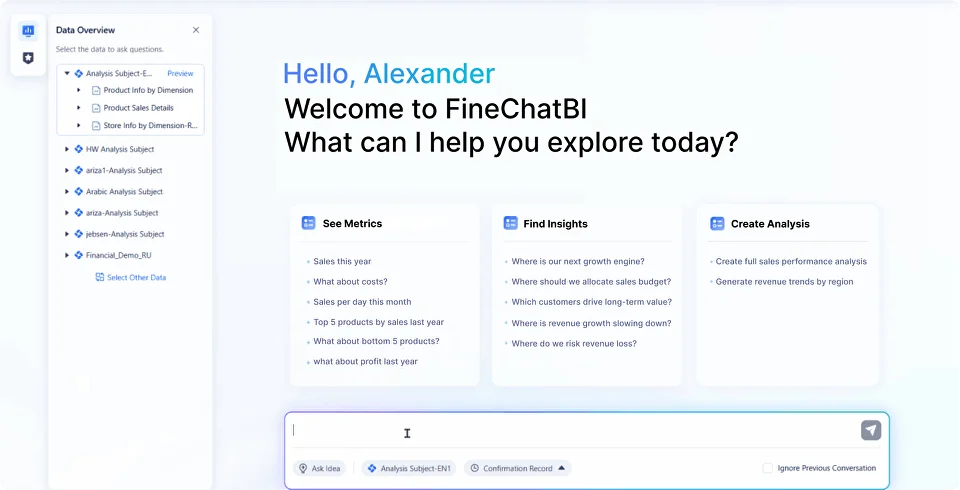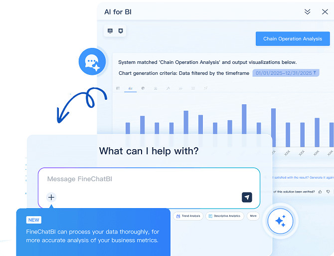 FineChatBI — это встроенный в платформу FineBI AI-инструмент на базе большой языковой модели (Large Language Model, LLM), который позволяет автоматизировать анализ данных.
