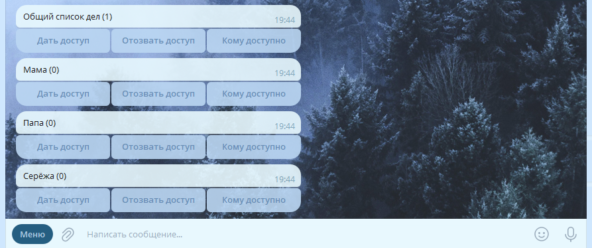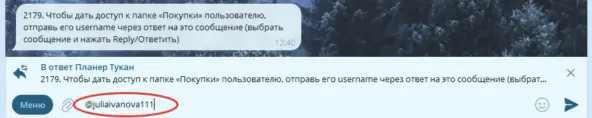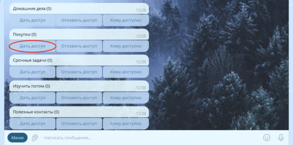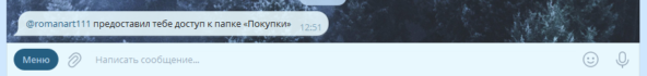 1. Для начала создаём папку с названием проекта через меню и добавляем туда заметки. Чтобы открыть один из разделов для общего доступа, нужно зайти в меню и нажать /share. 2. Бот покажет список папок, которыми можно поделиться. Чтобы выдать кому-то разрешение, жмём «Дать доступ» под нужной папкой. 3. Появится вот такое сообщение. Чтобы поделиться папкой, нужно отправить username пользователя в ответ на сообщение бота. 4. Вот так это будет выглядеть: Если всё прошло удачно, бот сразу сообщит о том, что разрешение выдано. К каждой папке можно подключить любое количество людей. При этом они будут видеть только задачи в разделе с открытым доступом, а остальные останутся приватными. Получаем разрешение: А теперь посмотрим, как всё это выглядит со стороны человека, которому дали доступ к папке. После выдачи разрешения он получает сообщение об этом внутри планера. Вот так оно выглядит: Папки с общим доступом хранятся там же, где и все остальные: меню → /show (показать категории). Если открыть список всех папок, сначала бот покажет личные, а под ними — общие папки с доступом. Можно открыть папку, посмотреть заметки, поменять статус задачи, добавить новую заметку. При этом все пользователи, подключенные к этой папке, будут получать уведомления о новых записях или изменении статуса задачи. Если совместный доступ больше не нужен, можно в любой момент отозвать разрешение. Новый функционал Тукана отлично подходит для оптимизации личного и рабочего времени. Расскажу, как сам его использую, и подскажу несколько идей. В повседневных делах бот поможет эффективно спланировать день/неделю/месяц, структурировать цели/задачи для всех членов семьи и не поругаться, если кто-то забыл купить молоко. Например, Тукан помогает планировать: 1. Совместные покупки. Ответственный за наличие продуктов в холодильнике создаёт в планере раздел «Продукты», добавляет туда разные позиции и даёт доступ тому, кто пойдёт в магазин. Вот так будет выглядеть папка со списком покупок: Адресат купил продукт → нажал «Выполнено» → владельцу папки сразу пришло сообщение от бота. Ещё это удобно, если покупками в семье занимаются все понемногу: один купил хлеб, другой — кофе, третий — зубную пасту. Планер поможет ни о чём не забыть и не купить лишнего. Заметили, что дома заканчиваются какие-то продукты → добавили в общий список → кто-то из семьи это купил и отметил задачку выполненной. 2. Подготовку к мероприятиям. Если готовитесь к свадьбе, дню рождения или любому другому мероприятию, в планере можно расписать этапы подготовки, сделать из них задачи и отслеживать выполнение. К задачкам легко добавляются референсы, голосовые сообщения, чек-листы, фото и видео. 3. Семейные проекты. Часто появляются задачи, которые надо планировать и выполнять совместно: ремонт, генеральная уборка, подготовка к отпуску или просто распределение обязанностей. С помощью Тукана можно сначала расписать задачи в общей папке, а потом распределить между членами семьи: например, сделать отдельные категории для папы, мамы и ребёнка, а потом выдать доступы. Или дать доступ к общей папке и предложить членам семьи самим выбрать себе список дел на день. Когда кто-нибудь из семьи переведёт задачу в выполненные или добавит новую, все остальные получат оповещение об этом. Благодаря такой синхронизации, список всегда поддерживаетс