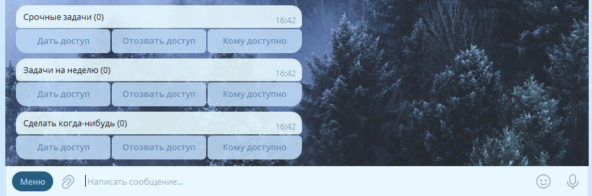 Теперь мы добавили в бот командный доступ. Можно создавать общие папки, добавлять в них других пользователей и совместно работать над задачами. Почти как в больших таск-менеджерах, только внутри мессенджера, быстро и без особой мороки с оформлением. Покажу, как это работает.