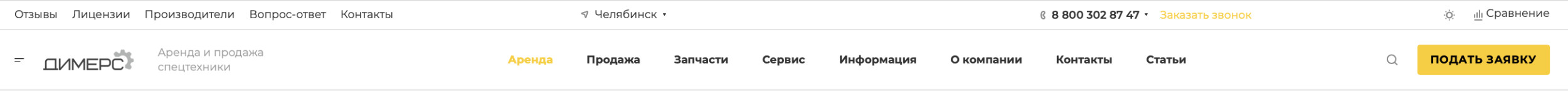 В ходе реализации проекта наша команда создала сайт на готовом решении Аспро: Корпоративный 3.0 На главной странице сайта мы разместили блок с информацией по аренде строительной техники. Благодаря наличию специальных блоков потенциальный клиент сразу может перейти к интересующей его информации — а именно, узнать об аренде техники конкретного типа. Каждый блок имеет визуальное изображение, которое упрощает поиск посетителям сайта. Кроме того, на главной странице сайта мы разместили информацию о шагах, которые необходимо предпринять для сотрудничества с компанией Димерс Форма обратной связи также размещена на главной странице. Она находится внизу сайта, чтобы люди могли сначала ознакомиться с интересующей их информацией на сайте, а после этого связаться со специалистами Димерс. Также для повышения уровня доверия к компании нашего клиента мы разместили блок с логотипами компаний, которые уже сотрудничают с Димерс Этап 2. Структура сайта Одним из первых этапов наша команда RANX настроила структуру сайта: в верхней части сайта указали локацию, номер телефона и форму обратной связи. Внедрили функционал сравнения, чтобы потенциальный клиент мог сравнить разные позиции по характеристикам. Благодаря примененным нами настройкам использование сайта стало интуитивно понятным. Основные разделы находятся в самой верхней строчке, благодаря чему потенциальный клиент может с легкостью перейти к интересующей его информации: узнать об аренде или продаже спецтехники, а также приобрести запчасти или обратиться в сервисную службу. Также мы настроили каталог: в верхнюю часть вывели блоки с разными типами техники, в левой части разместили фильтрацию товаров. Настроили отображение карточек товаров, чтобы клиент мог сразу ознакомиться с краткой информацией о каждом варианте техники. Кроме того, мы доработали вывод основных характеристик в список и настроили фильтра Вывод основных характеристик даёт возможность ознакомиться с показателями того или иного товара без непосредственного перехода в карточку В карточках товаров содержатся визуальные элементы техники, ее описание и подробные характеристики. Мы добавили на сайт специальную функцию, которая предоставляет возможность сравнить товары между собой по разным показателям. Произвели настройку региональности на поддоменах Мы в RANX ценим доверие клиентов, доверяющих нам работу по разным проектам! С компанией Тортрак мы уже успешно реализовали два проекта! В результате нашей последней работы мы получили полностью оформленный и настроенный сайт, готовый к работе с клиентами и дальнейшему развитию. Благодаря удобной структуре, сайт интуитивно понятен для использования потенциальными клиентами. Все разделы выведены в верхнюю строчку сайта, чтобы посетителям не приходилось искать информацию по всему сайту. Настроенные каталог и карточки товаров предоставляют клиентам подробную информацию по товарам. Созданные нами графические материалы являются точными визуальными изображениями разных видов строительной техники. Они способствуют лучшей наглядности, из-за чего пользователям легче находить интересующий их товар. Наш новый кейс наглядно демонстрирует как на сегодняшний день выглядит современный сайт. Понятная структура, легкая навигация и лаконичный дизайн — три кита, на к