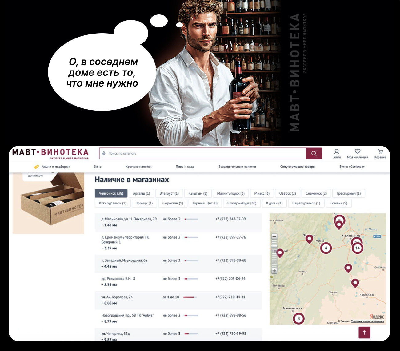 Мы полностью переработали функционал калькулятора, нарисовали новый дизайн. Самое важное, что будет в нём — так это автоматическое формирование корзины для заказа на основе калькуляций. Мы сможем отслеживать конверсию в заказ после подбора напитков. МАВТ ставит около своих магазинов контейнеры для стекляных бутылок и отдаёт их потом на переработку. Так же были разработаны многоразовые сумки для покупок в замен пакетам из пластика. Магазины предоставляют скидки тем, кто ими пользуется. Презентовали в виде посадочной страницы эко-направление компании. Страница в себе имеет описание эко-программы с бонусами пользования её для клиентов, а так же карту контейнеров для переработки стекла в дальнейшем. Точек продаж много и не всегда то, что нужно, есть в одной. Клиентам было бы удобно — забирать всё с одного магазина. Решением этой проблемы стал функционал — сборный заказ. При оформлении заказа появилась возможность при отсутствии товара или нужного количества, в пару кликов, переместить заказ в нужный магазин. Внутренними процессами клиента товар в ближайшее время появится в нужном магазине и придёт оповещение о готовности. В точках продаж напитки в основной массе находятся на полках без охлаждения. Но что делать, если нет времени охлаждать напитки к столу, а гости уже на пороге? Казалось бы, небольшой функционал, но какая востребованность у покупателей! Это подтверждают метрики. Мы добавили галочку при добавлении товара в корзину «Охладить». В самом заказе в магазин уже поступает информация, что покупатель хочет забрать заказ и конкретные позиции — холодными. Силами сотрудников напитки к опредленному времени будут перемещны в холодильники. Сеть постоянно растёт. Для удобства клиентов ка сайт была добавлена карта и магазины по близости. Можно выбрать товар и сразу ближайшую точку, где его можно забрать. Зачем нам отдельно открывать карту с точками? Функционал по GEO пользователя покажет, в каком ближайшем магазине товар в наличии Практически весь сайт управляется из внутренней кастомной системы компании. Из неё передаётся каталог, сайт отправляет в неё заказы, получаем все мероприятия и вакансии. Под каждый узел написан свой обмен. Данная сфера имеет отчётливую сезонность, но она выражена не временами года, а праздниками. Праздники — это время, когда сайт не должен упустить ни одного заказа. Он должен работать стабильно, не должно быть простоя, все запросы должны вовремя обработаться между системами. Мы постоянно оптимизируем запросы, как внутри самого сайта, так и с внешними системами, так как отчетливо понимаем ответственность за бесперебойную работу проекта. Периодически делаем рефакторинг кода и обновляем инструменты, такие как базы данных, версии php. Для примера в эти новогодние праздники пиковая нагрузка максимально увеличивалась в 8 раз, для примера приведём скриншот из метрики: Результатом является: 1) Удовлетворенность клиента в качестве и скорости развития проекта 2) Рост метрик по нужным показателям, особенно в сезонные пики 3) Отказоусточивость проекта Оставьте заявку на нашем сайте и мы проведем аудит по вашему проекту — подскажем оптимальный вектор развития в онлайне