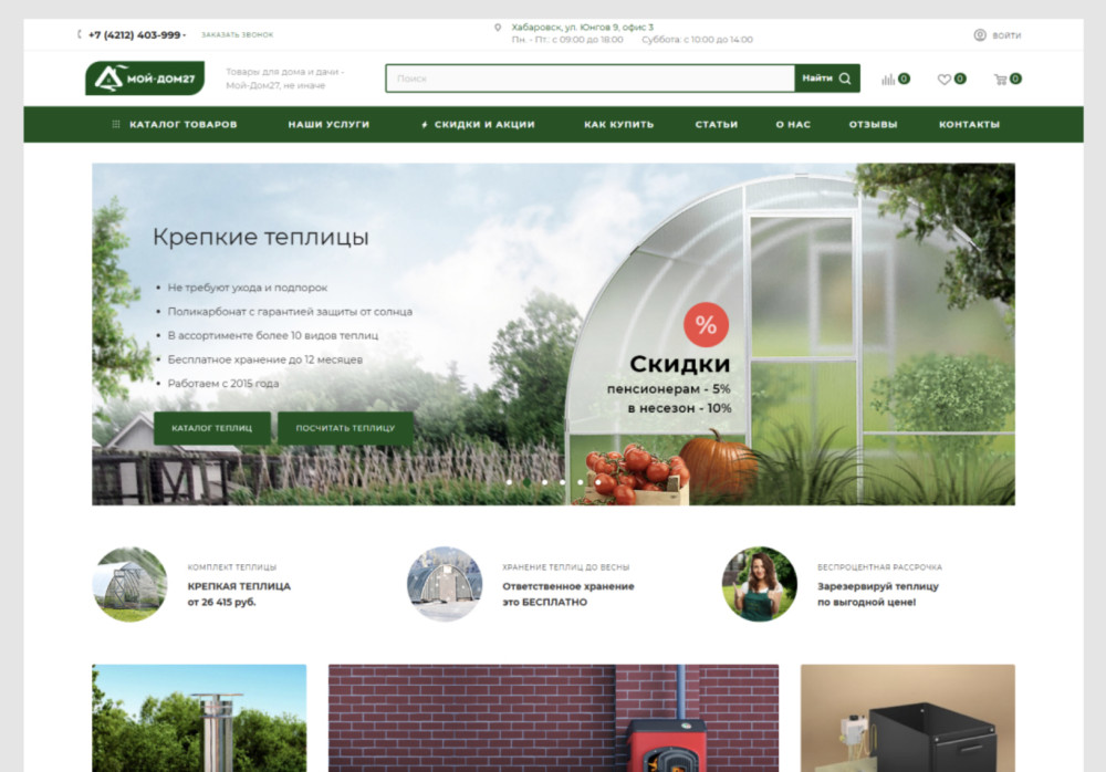 Клиент занимает реализацией теплиц различных размеров для физических лиц. Это основное направление.