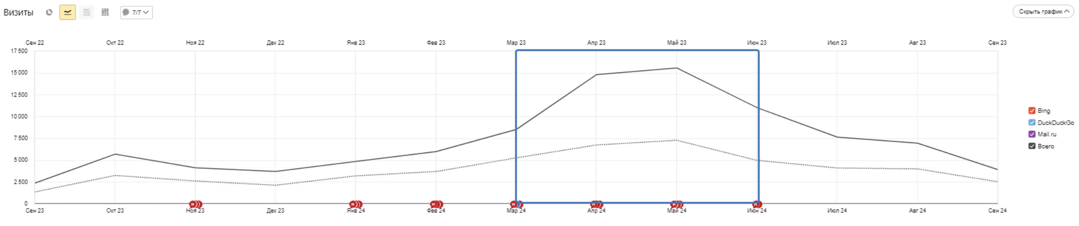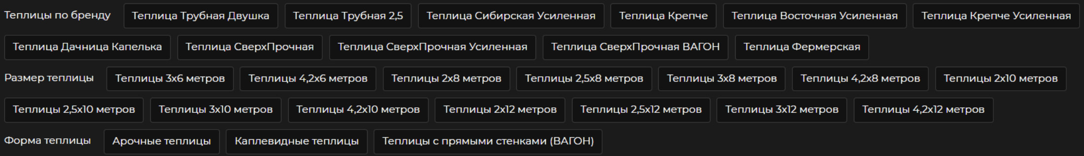 Был единственный раздел — Теплицы и в нём были собраны теплицы всех размеров, брендов и материалов. Мы создали на основе ядра страницы, которые позвоили нам охватить семантику, часть из них вынесли в теги: Все страницы прорабатывались по мере возможности контентом. По итогу мы смогли увеличить сезонную посещаемость в 2 раза. Мы очень довольны результатом. Желаем клиенту дальнейшго развития! Если вашему проекту требуется продвижение или вы хотите подготовить его к новому сезону — оставьте заявку на нашем сайте, и мы подскажем оптимальный вектор его будущего развития!