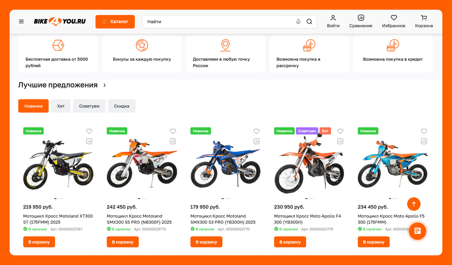 Миграция и доработка интернет-магазина мототехники под реальные продажи