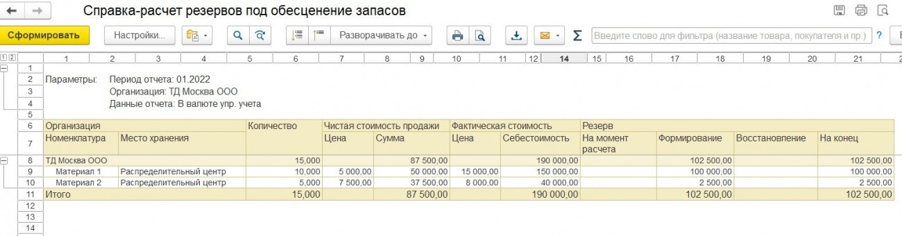 Возможности функционала начисления резервов под обесценение ТМЦ в 1C:ERP
