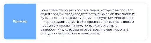 Третье. Выбирайте инструмент автоматизации с учетом потребностей конечного пользователя. Четвертое. Выбирайте решение с простым, понятным и удобным для работы интерфейсом. Это также поможет сотрудникам быстрее адаптироваться к изменениям. Планируете развивать бизнес и масштабироваться — внедряйте системы автоматизации. Подключайте решения, когда в этом есть острая необходимость, а затраты на нововведение не превышают доходы компании. Выбирайте тип автоматизации в зависимости от размера бизнеса, а конкретные инструменты — отталкиваясь от потребностей компании и назначения программных решений.